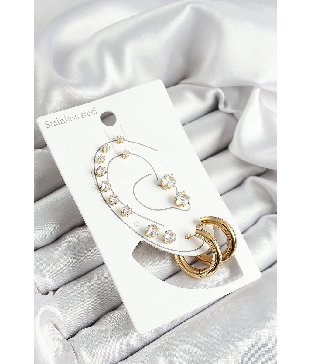 Shoecide 316l Çelik Halka Figürlü Ve Zirkon Taşlı Gold Renk 7'li Çift Kadın Küpe Set