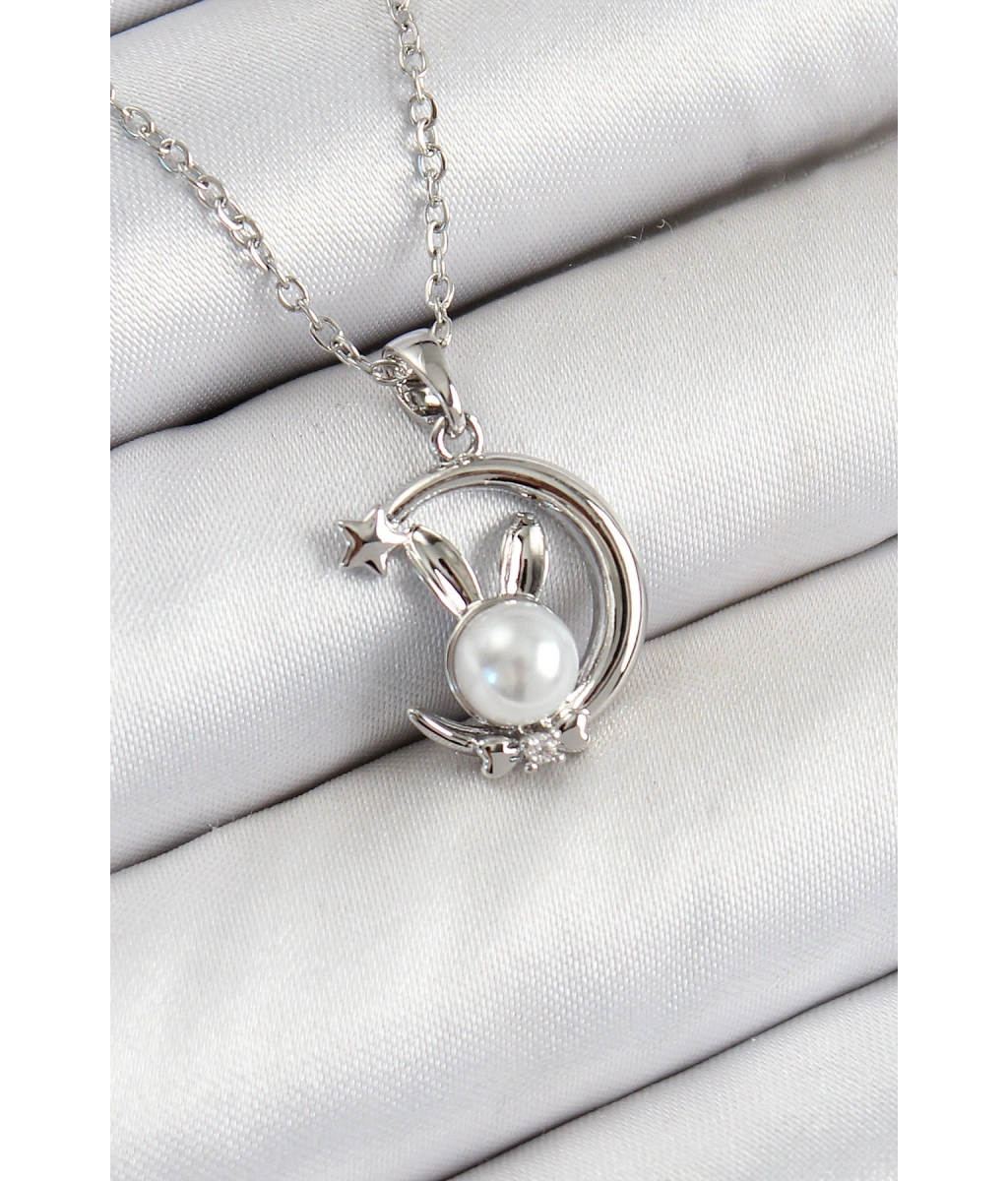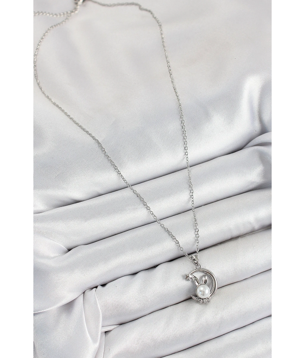 Shoecide 316l Çelik İnci Detaylı Hilal Tavşan Model Gümüş Renk Kadın Kolye