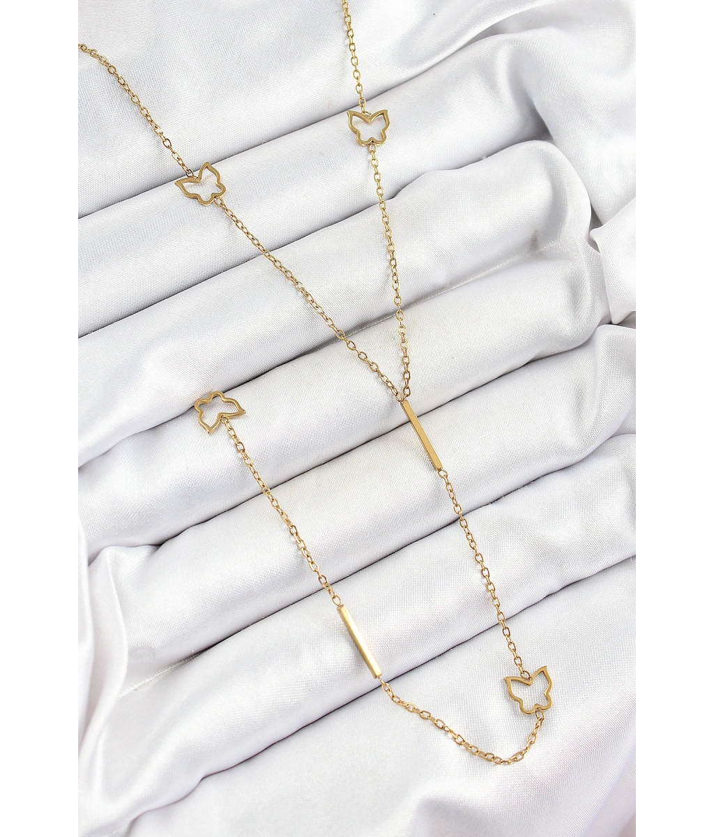 Shoecide 316l Çelik Kelebek Figürlü Y Model Gold Renk Kadın Kolye