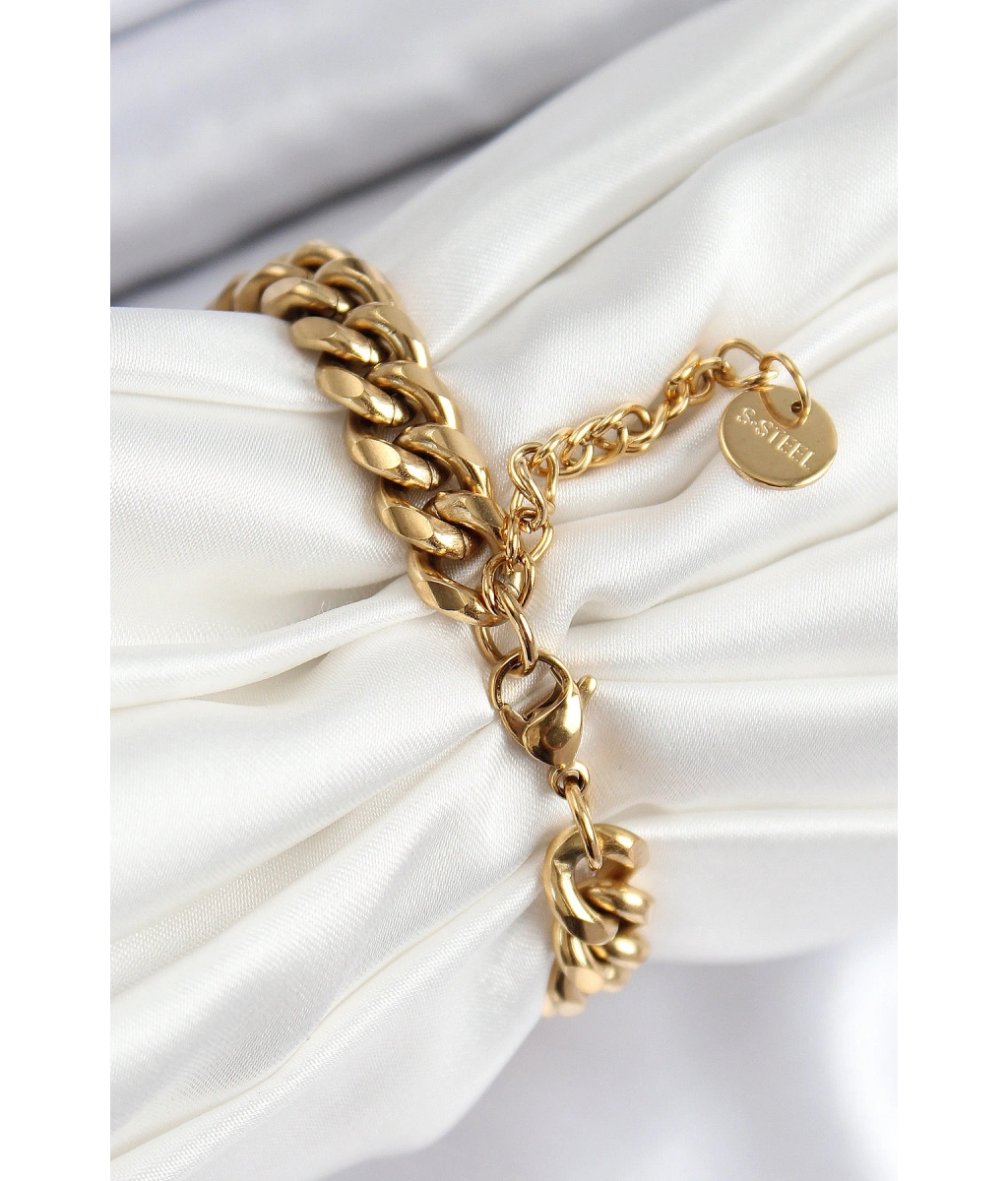 Shoecide 316l Çelik Klasik Kalın Zincir Model Gold Renk Kadın Bileklik