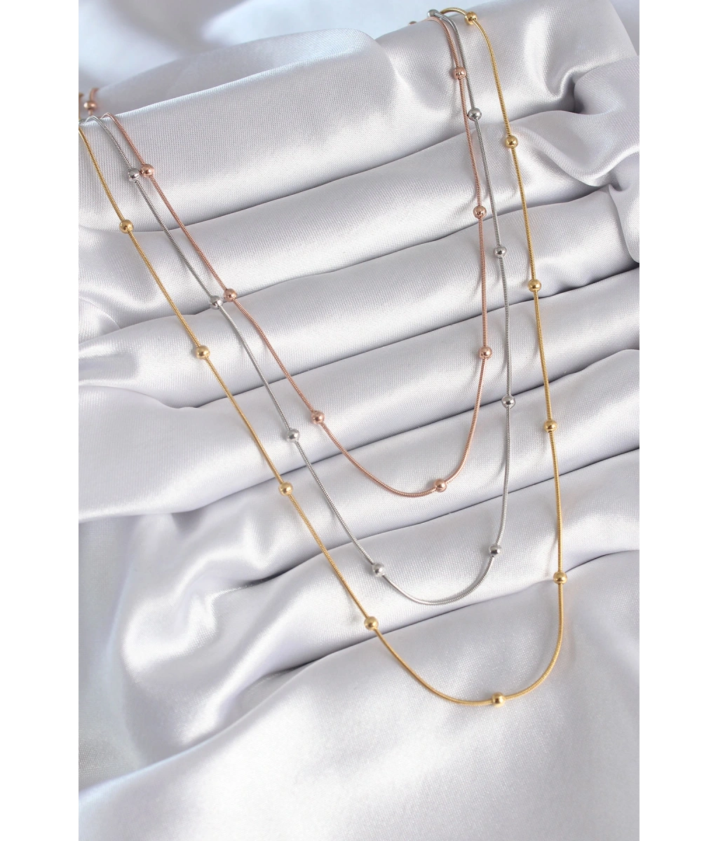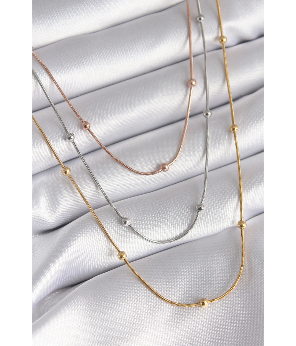 Shoecide Çelik Altın Renkli Topçuk Tasarımlı Çoklu Kolye