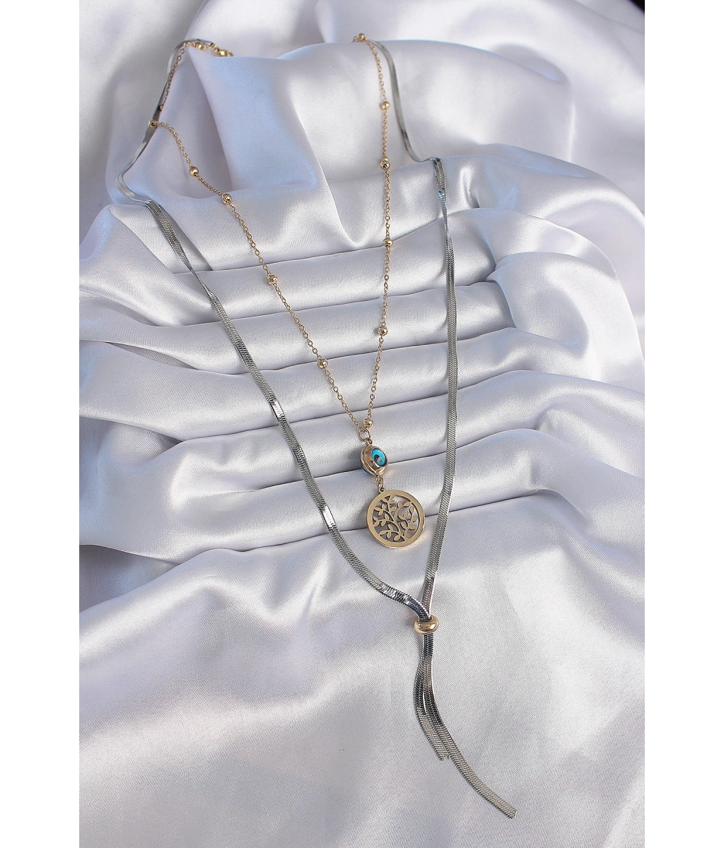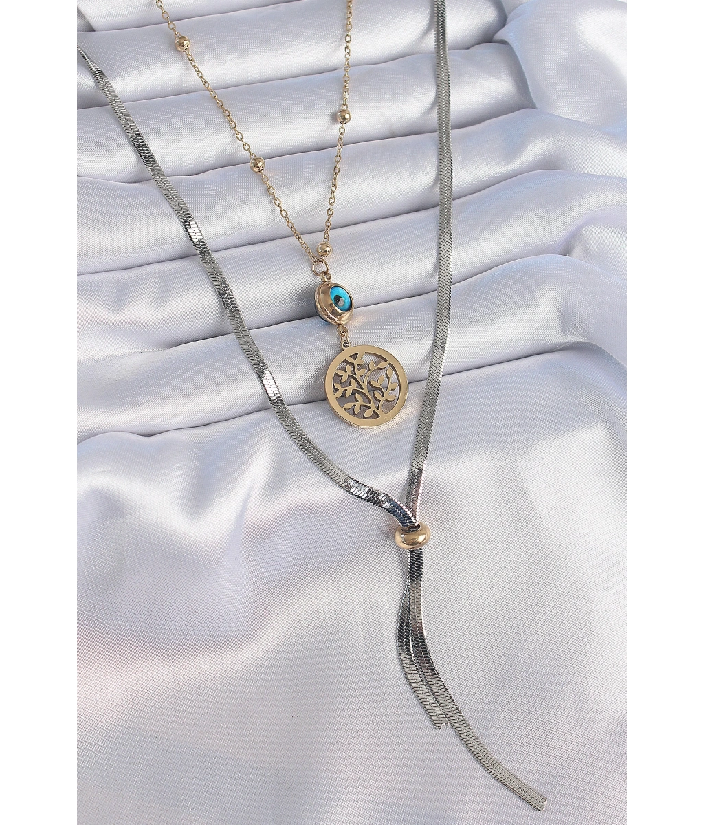 Shoecide 316l Çelik Mix Renk Filiz Figür Nazar Boncuk Detay Uzun Kadın Kolye