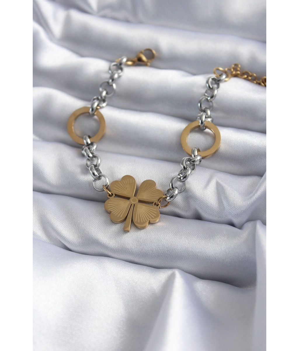 Shoecide 316l Çelik Mix Renk Zincir Model Yonca Figür Kadın Bileklik