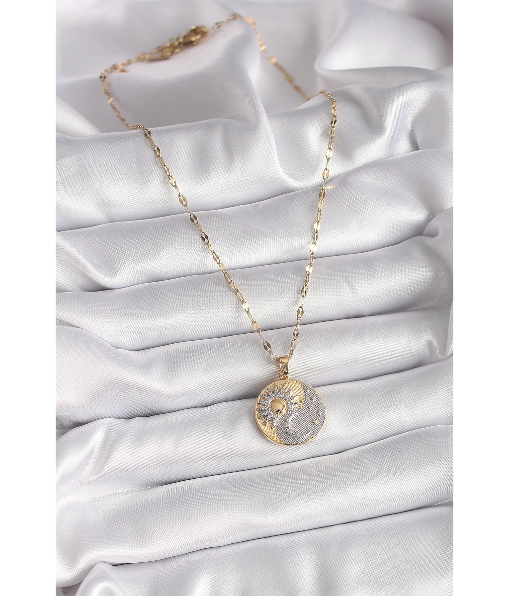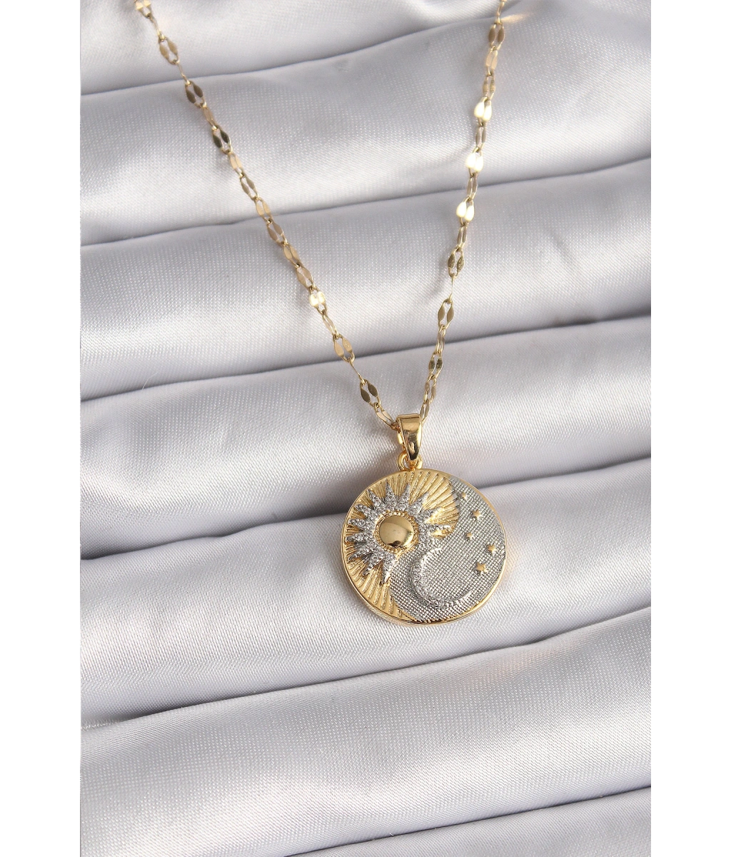 Shoecide 316l Çelik Mix Renk Zincir Zirkon Taşlı Gün Doğumu/batımı Madalyon Model Kadın Kolye
