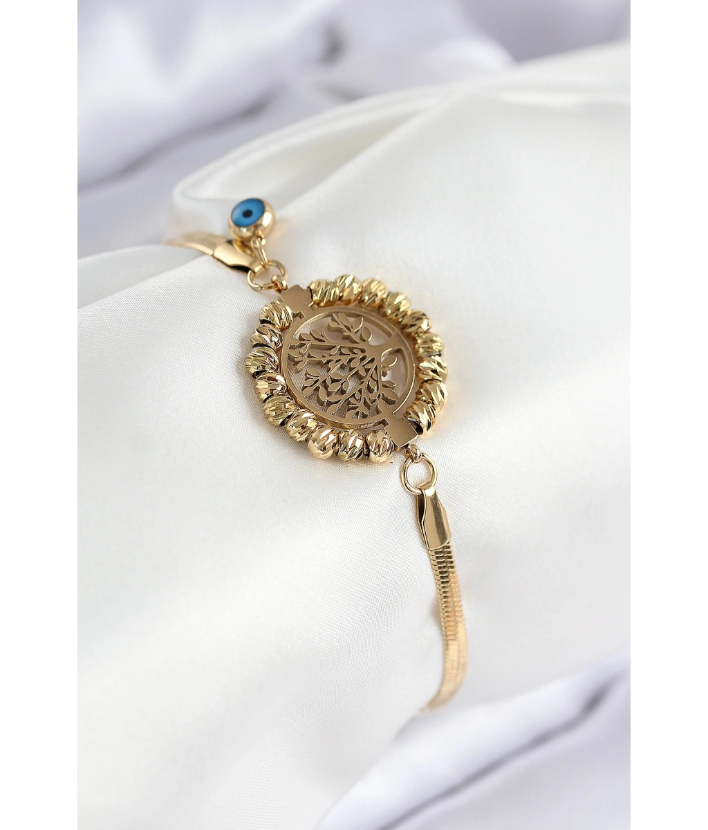Shoecide 316l Çelik Nazar Boncuk Detaylı Hayat Ağacı Model İtalyan Zincir Gold Renk Kadın Bileklik