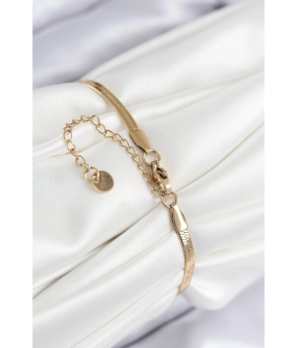Shoecide 14k Gold Renk Kaplama Ezme Yılan Zincir Model Cm Kadın Bileklik