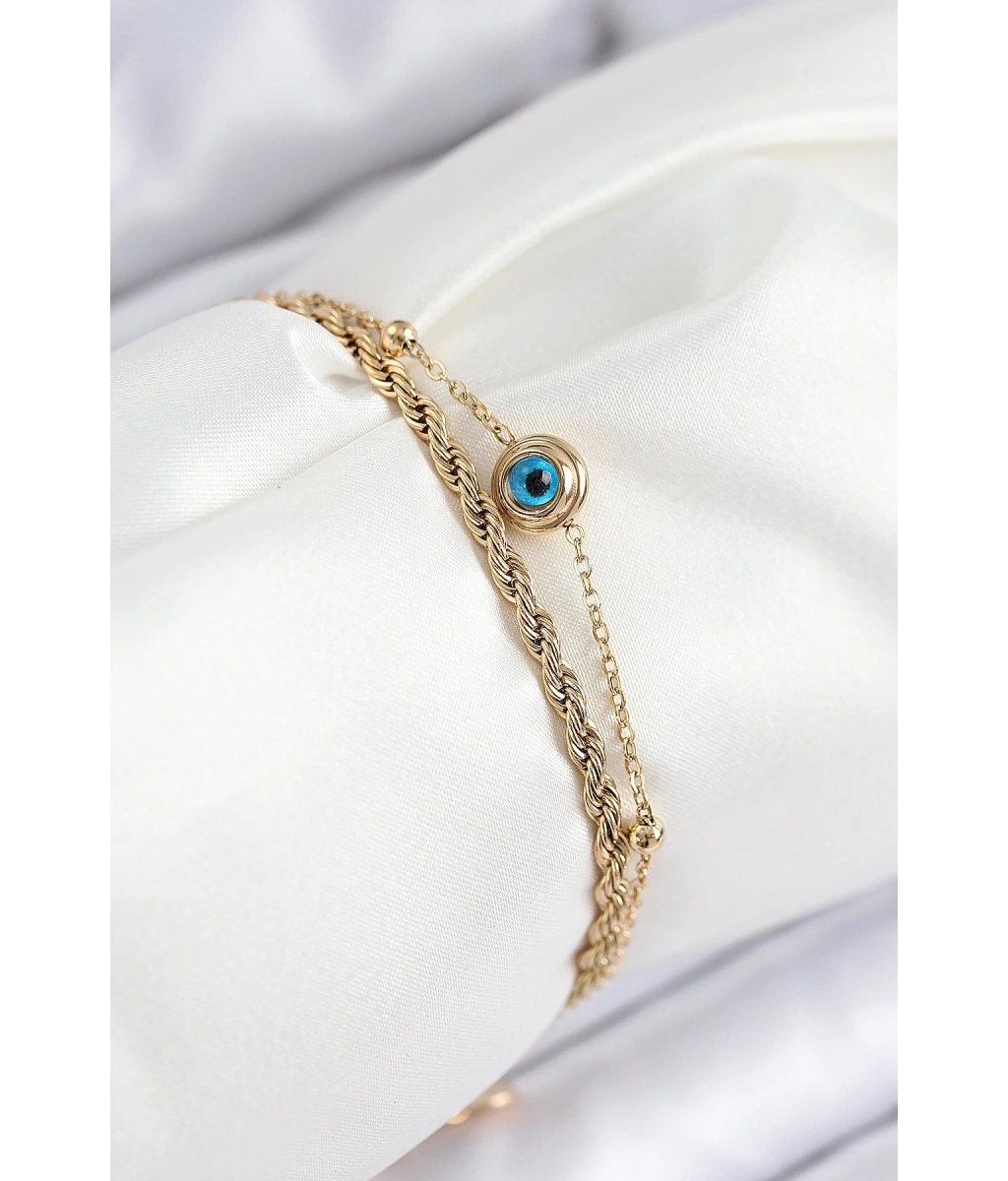 Shoecide 316l Çelik Nazar Boncuk Model Burgu Zincir Gold Renk Kadın Bileklik