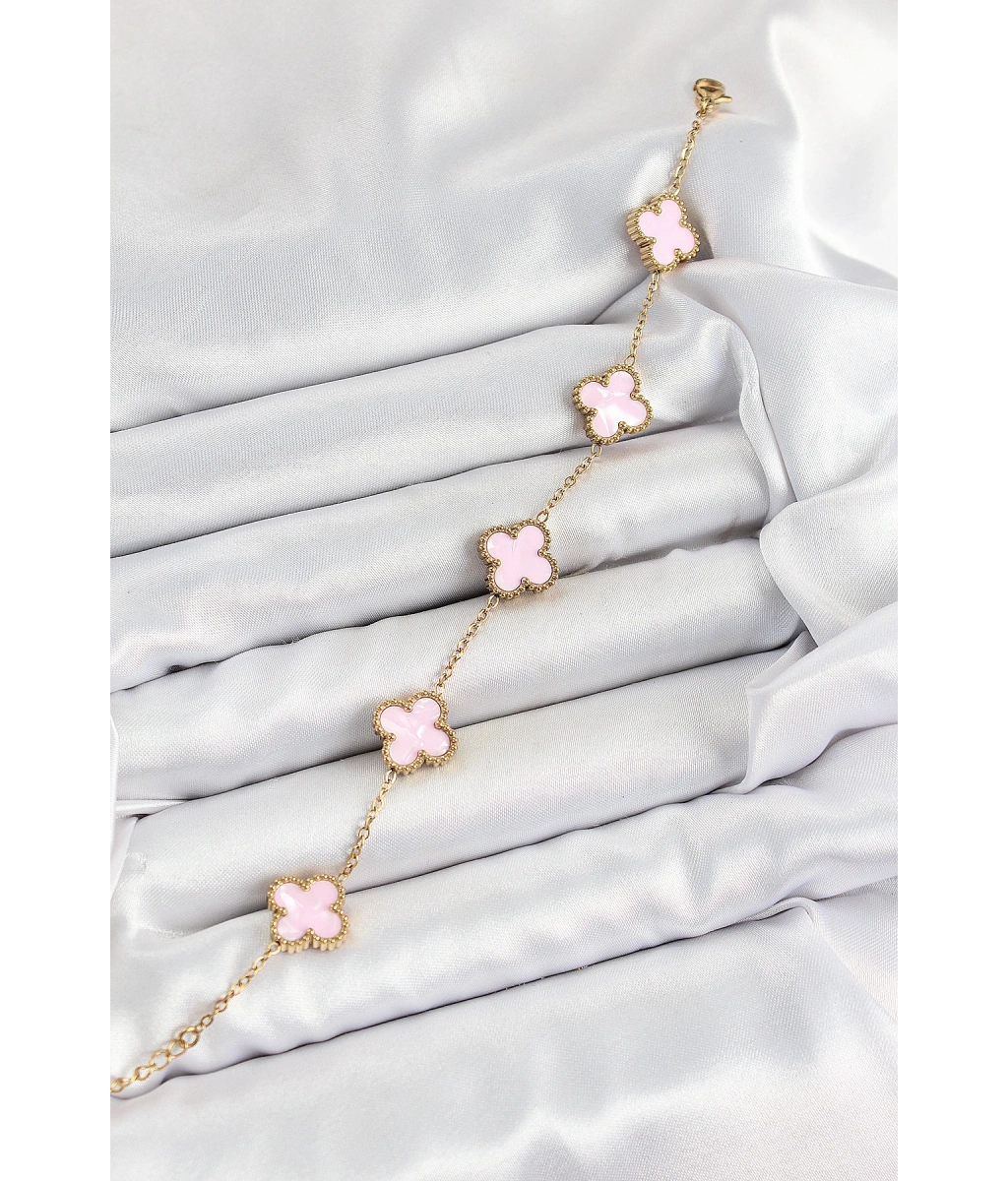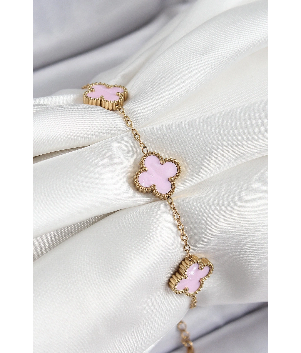 Shoecide 316l Çelik Pembe Sedef Yonca Model Gold Renk Kadın Bileklik