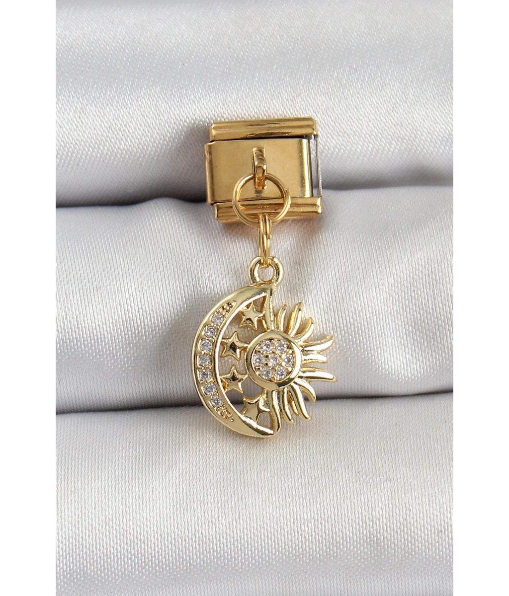 Shoecide 316l Çelik Sallantılı Zirkon Taşlı Ay Ve Güneş Model Gold Renk Nomination Charm