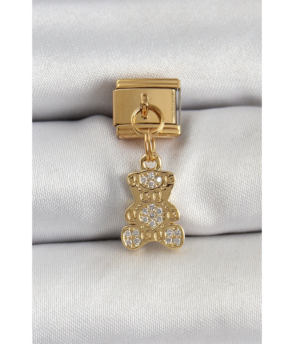 Shoecide 316l Çelik Sallantılı Zirkon Taşlı Ayıcık Model Gold Renk Nomination Charm