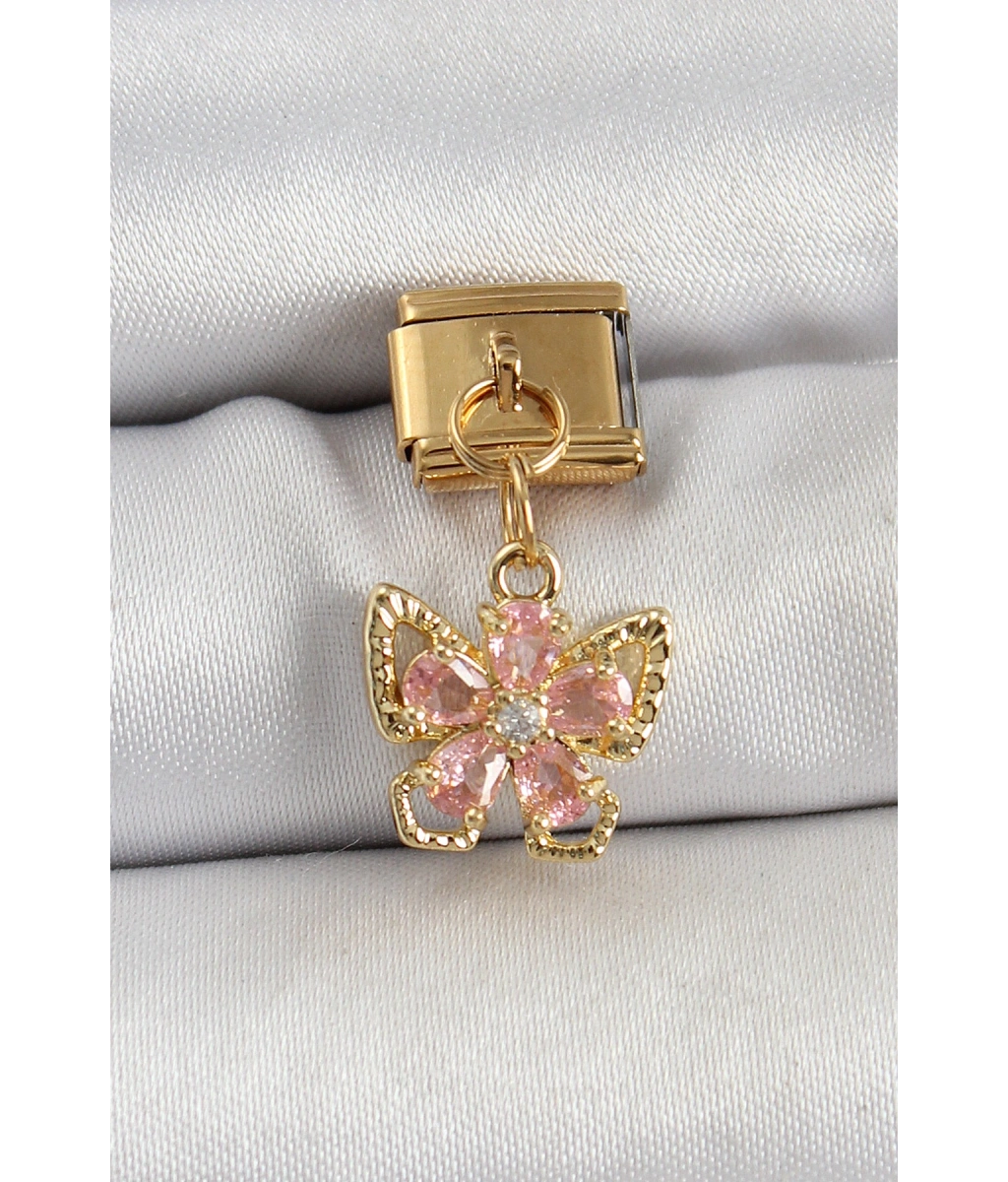 Shoecide 316l Çelik Sallantılı Zirkon Taşlı Çiçek Figürlü Kelebek Model Gold Renk Nomination Charm