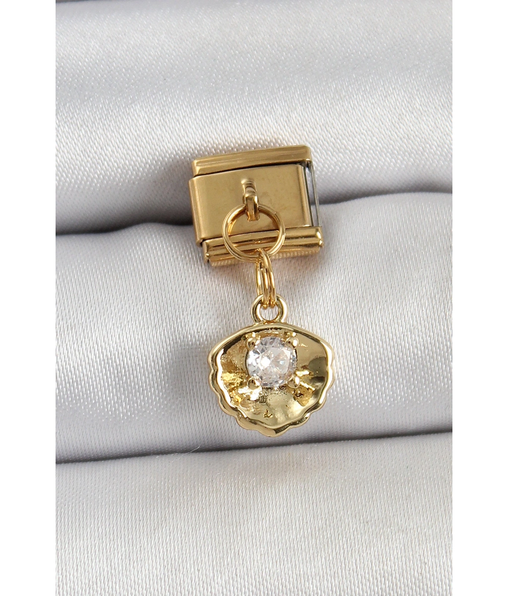 Shoecide 316l Çelik Sallantılı Zirkon Taşlı İstiridye Model Gold Renk Nomination Charm