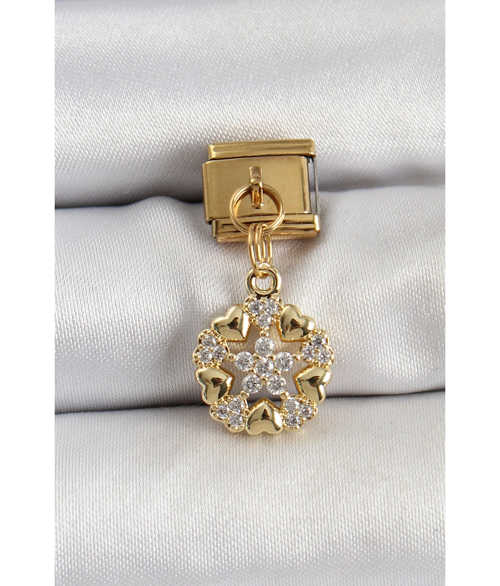 Shoecide 316l Çelik Sallantılı Zirkon Taşlı Kalp Detaylı Yıldz Model Gold Renk Nomination Charm