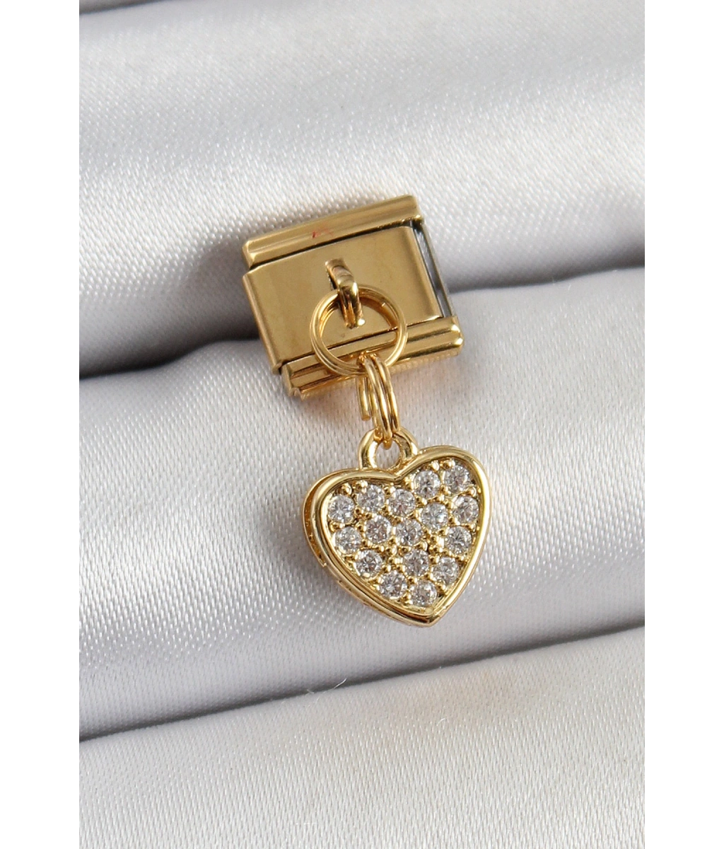 Shoecide 316l Çelik Sallantılı Zirkon Taşlı Kalp Model Gold Renk Nomination Charm