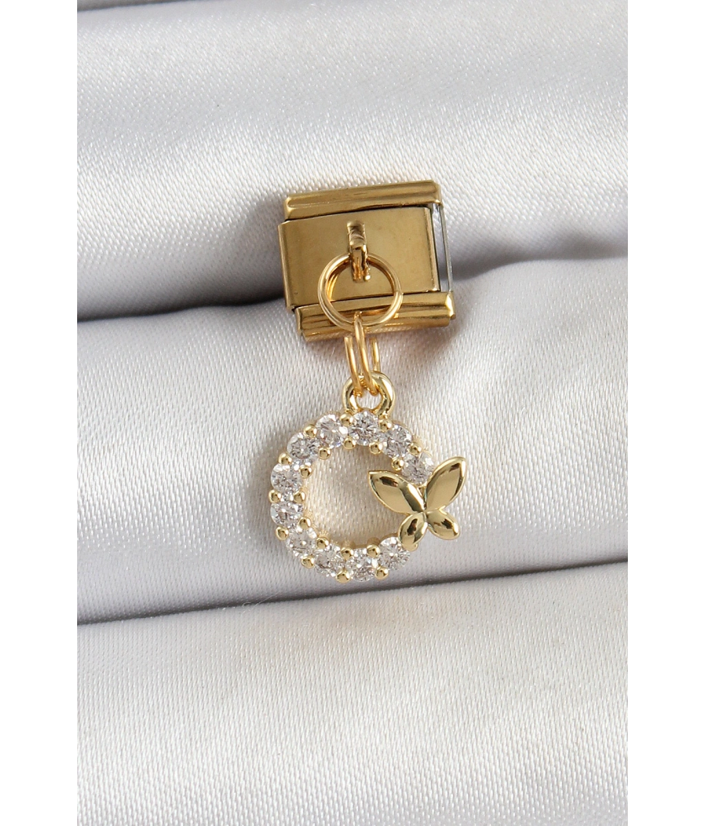 Shoecide 316l Çelik Sallantılı Zirkon Taşlı Kelebek Detaylı Halka Model Gold Renk Nomination Charm