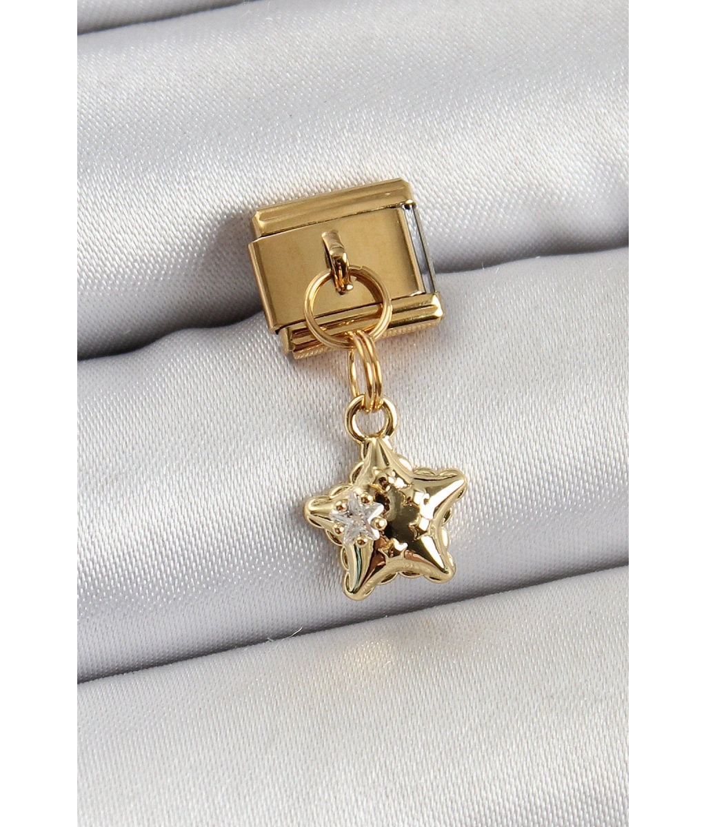 Shoecide 316l Çelik Sallantılı Zirkon Taşlı Yıldız Model Gold Renk Nomination Charm