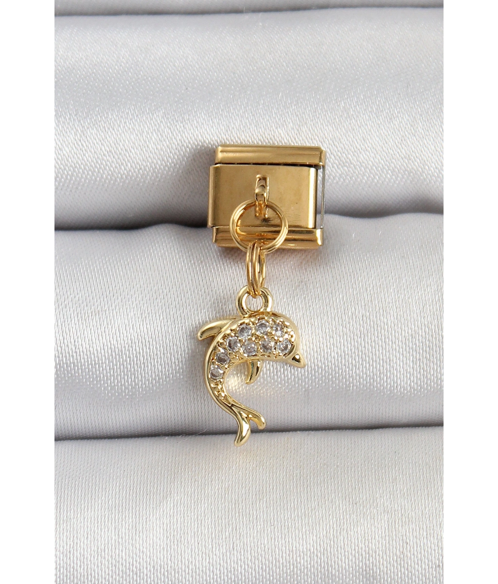 Shoecide 316l Çelik Sallantılı Zirkon Taşlı Yunus Balığı Model Gold Renk Nomination Charm
