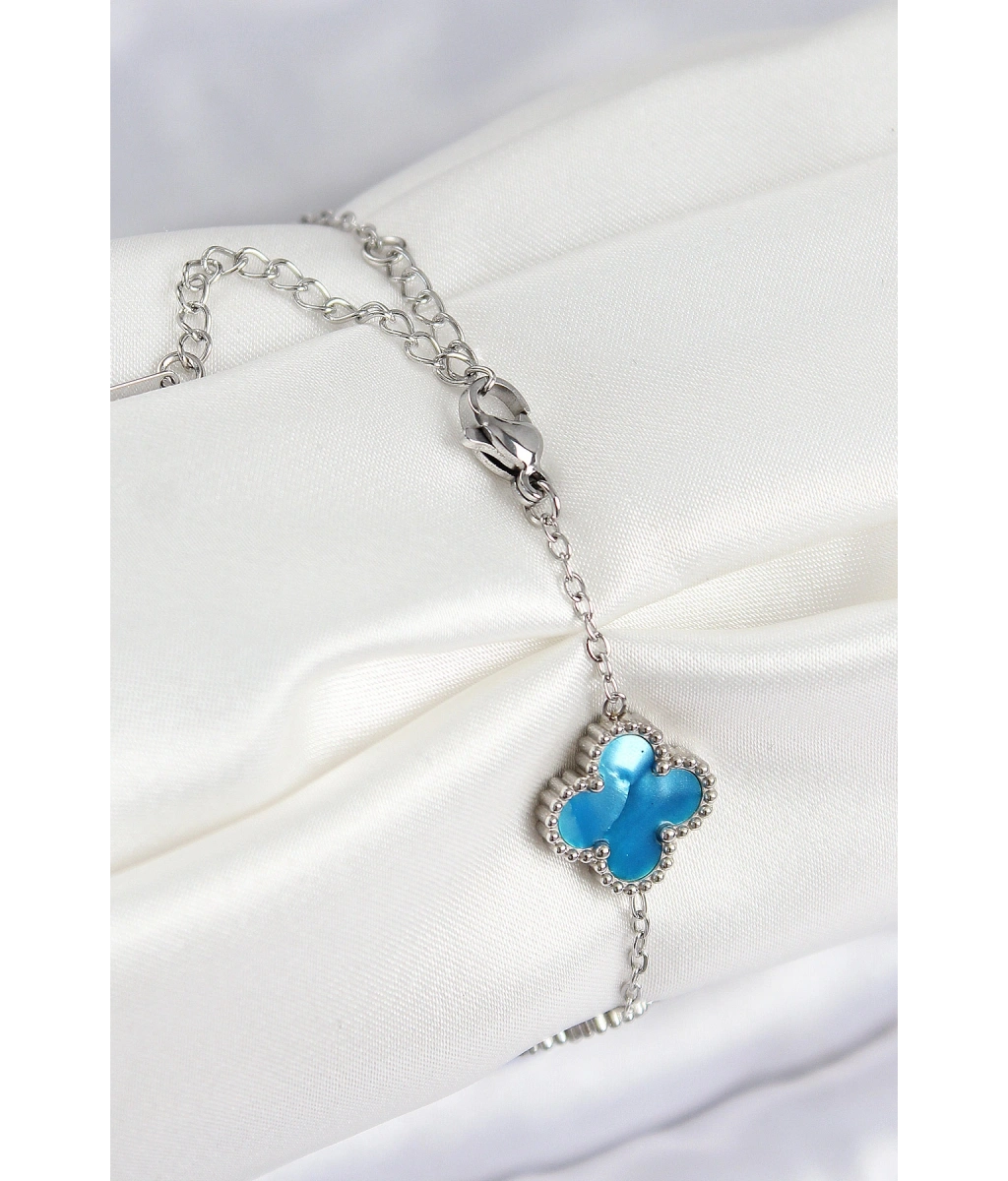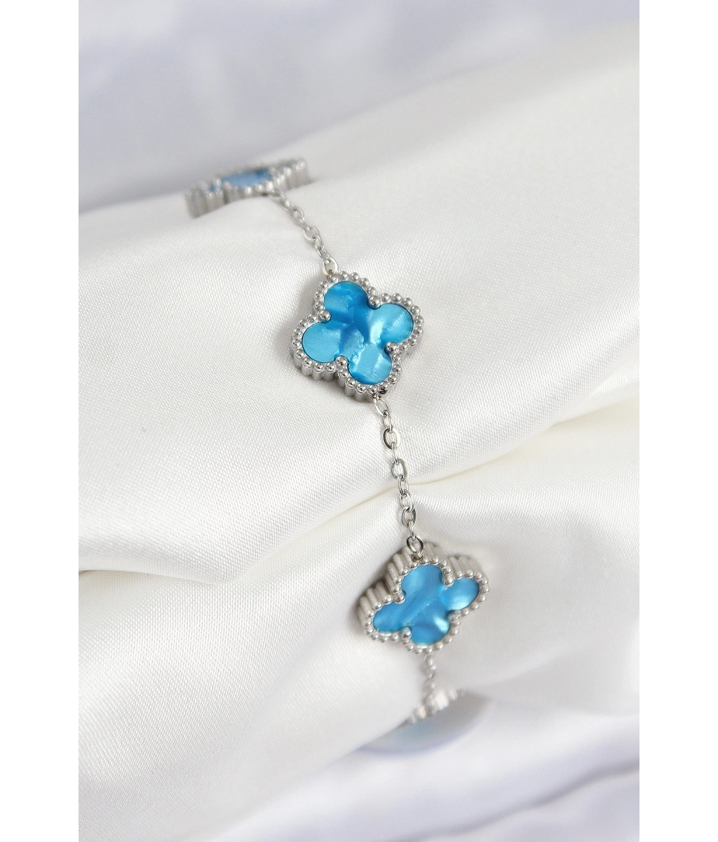 Shoecide 316l Çelik Sedefli Gökyüzü Mavisi Gümüş Renk Yonca Kadın Bileklik