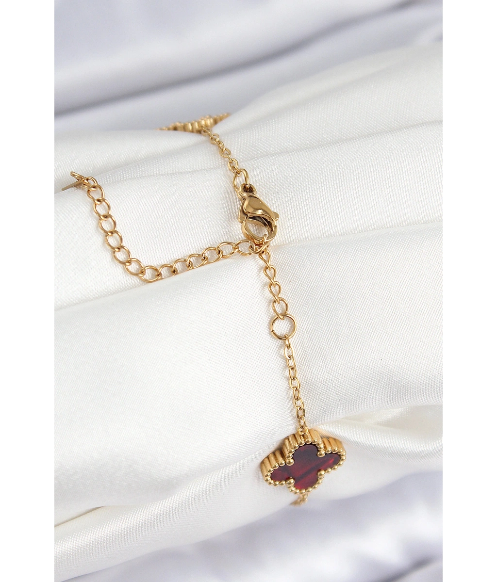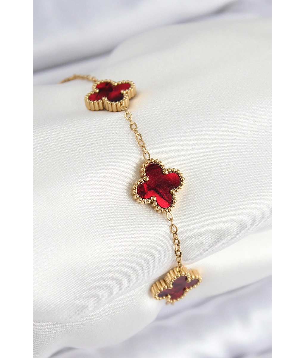 Shoecide 316l Çelik Sedefli Kırmızı Gold Renk Yonca Kadın Bileklik