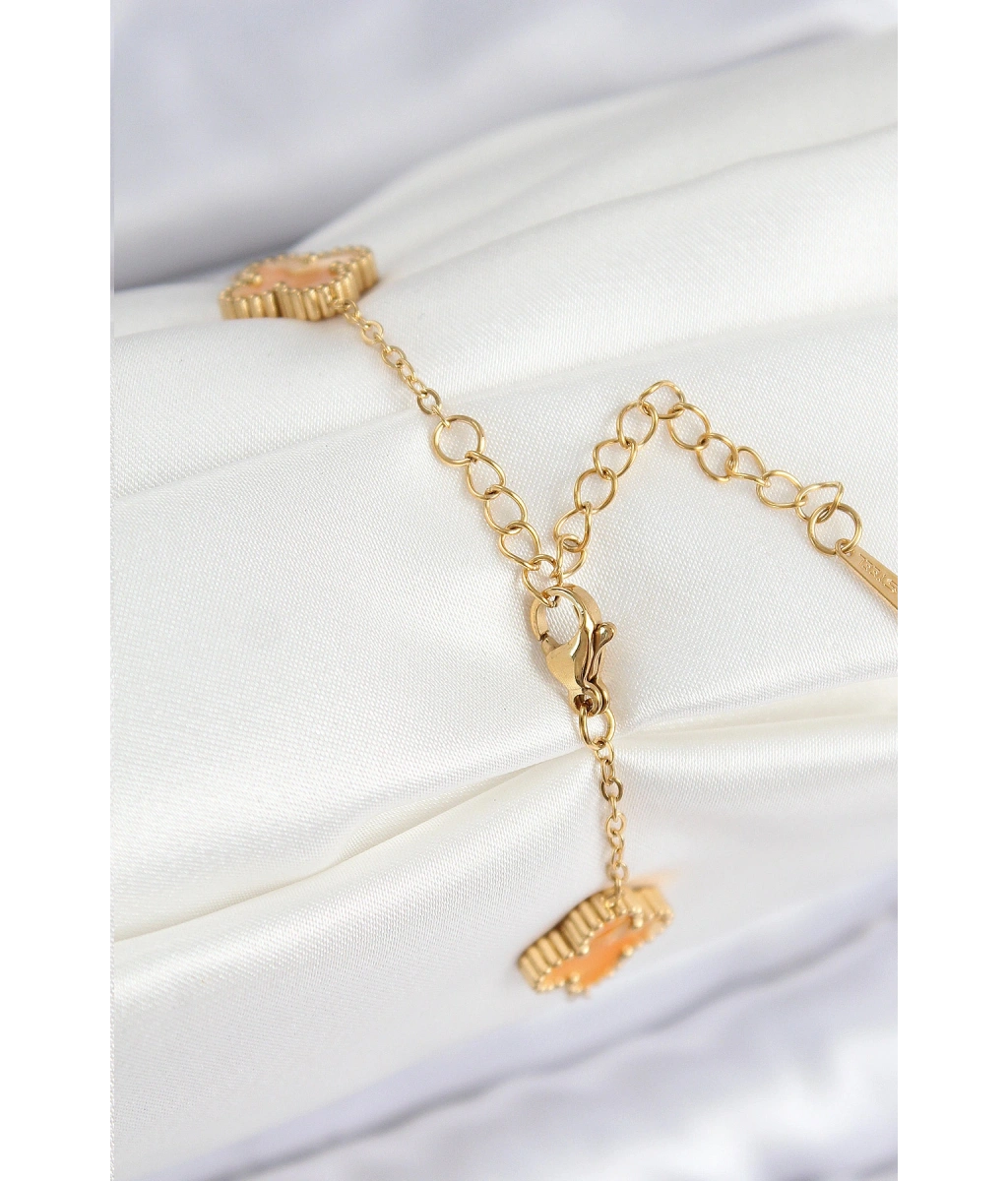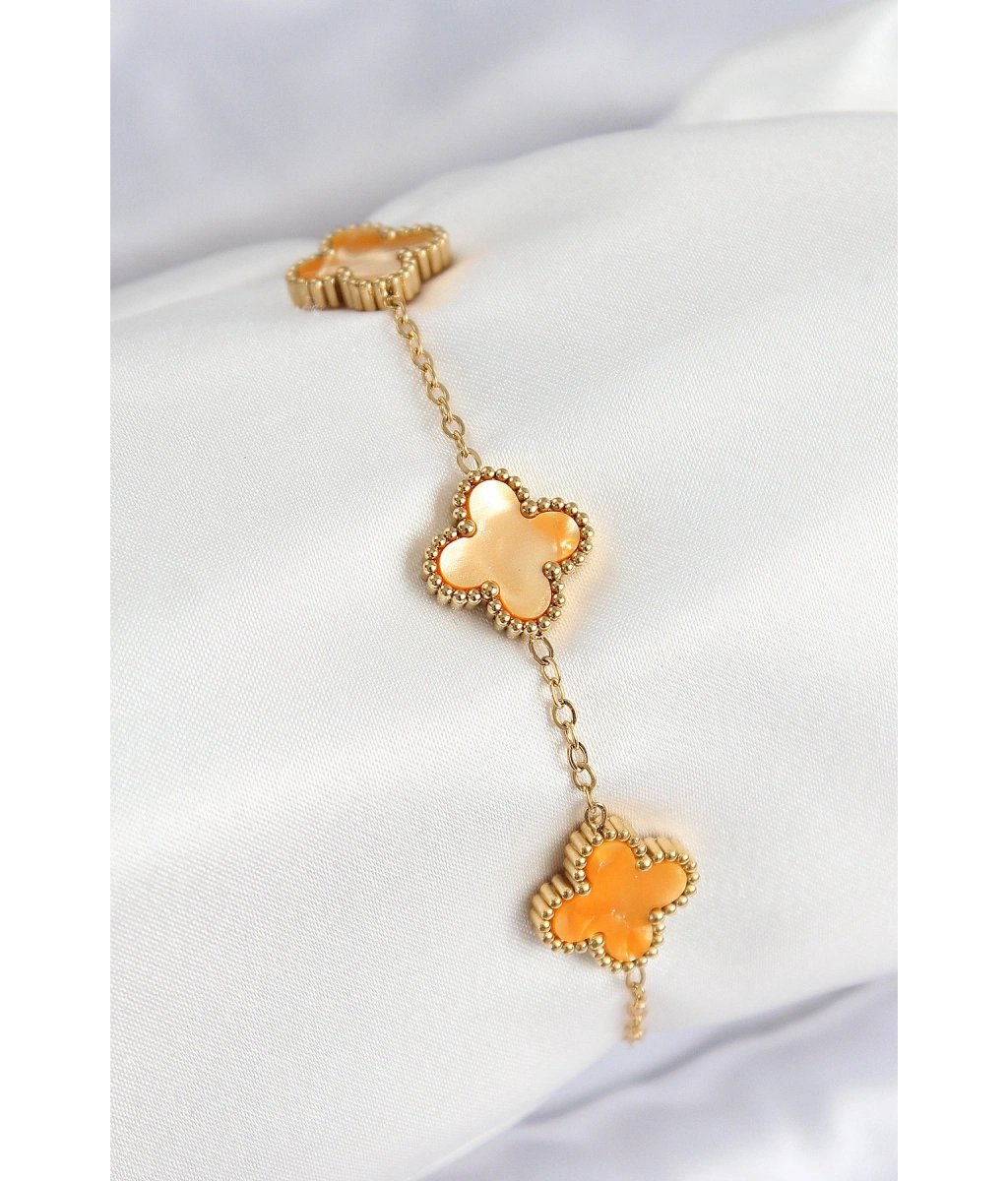 Shoecide 316l Çelik Sedefli Turuncu Gold Renk Yonca Kadın Bileklik