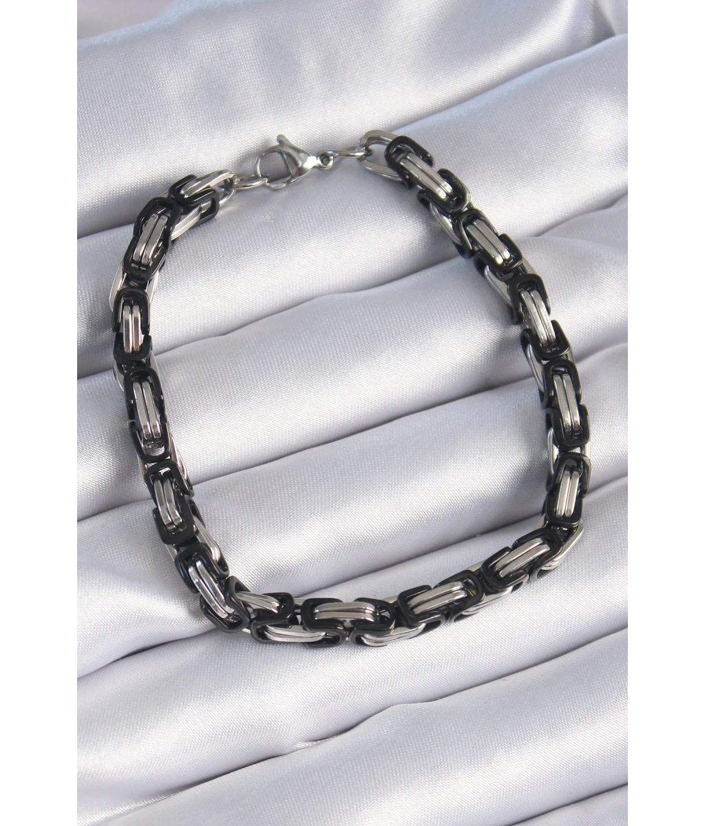 Shoecide 316l Çelik Siyah Gümüş Renk Kral Zincir Model Erkek Bileklik