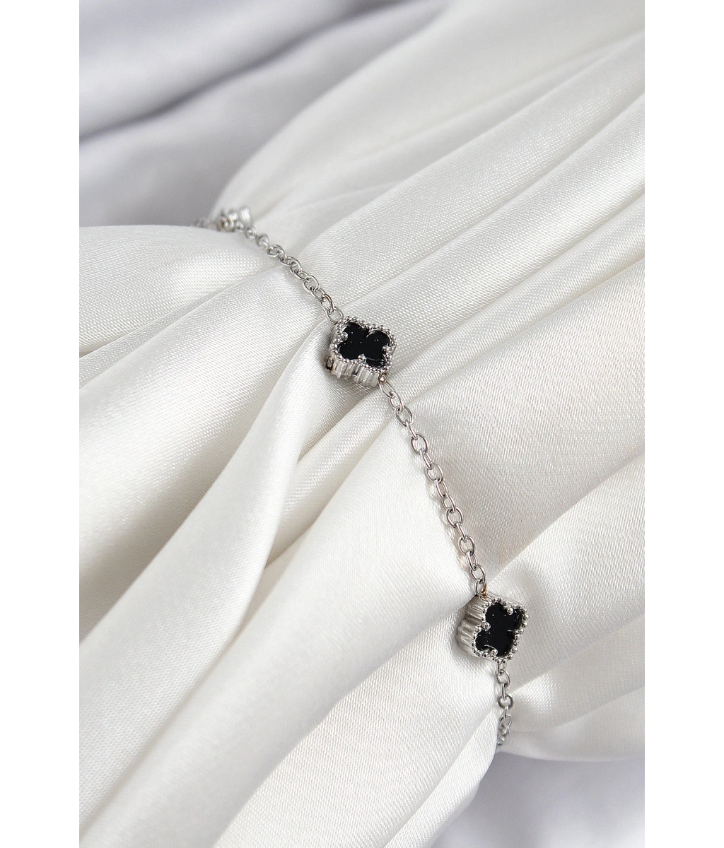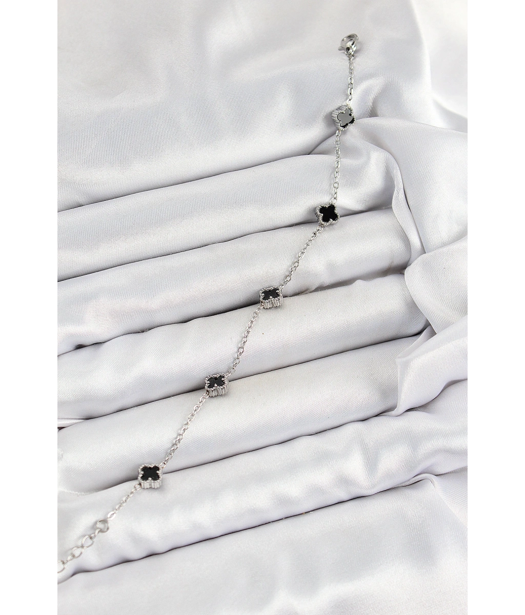 Shoecide 316l Çelik Siyah Sedef Yonca Model Gümüş Renk Kadın Bileklik