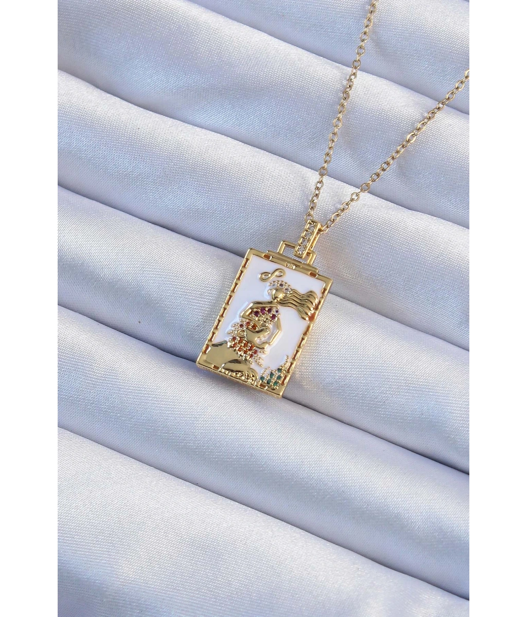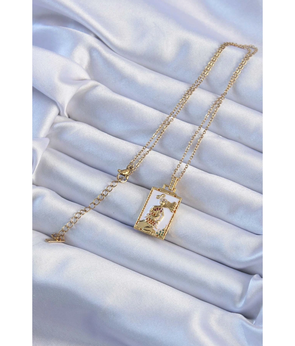 Shoecide 316l Çelik Zincir Altın Renk Beyaz Mineli Tarot Kolye
