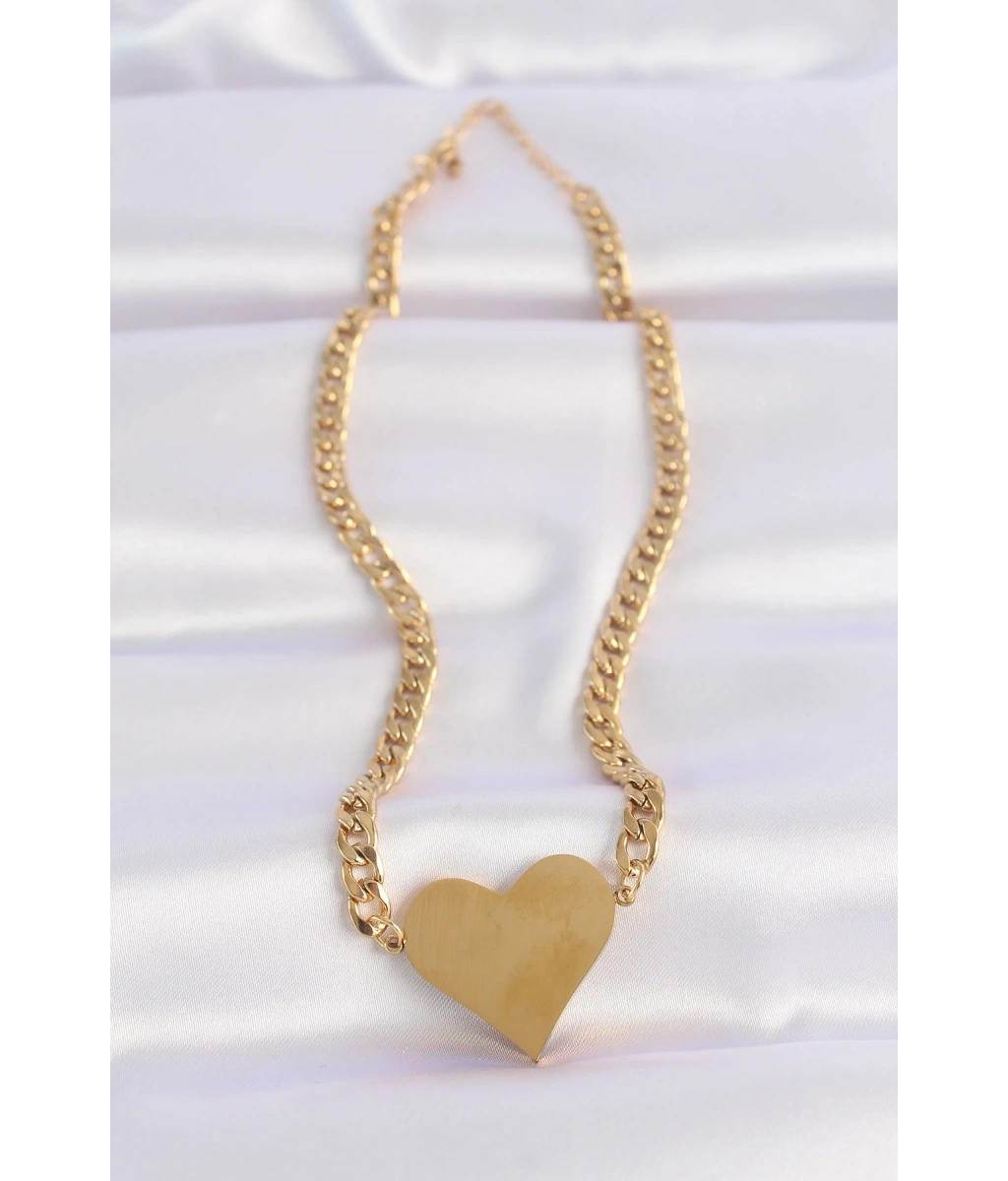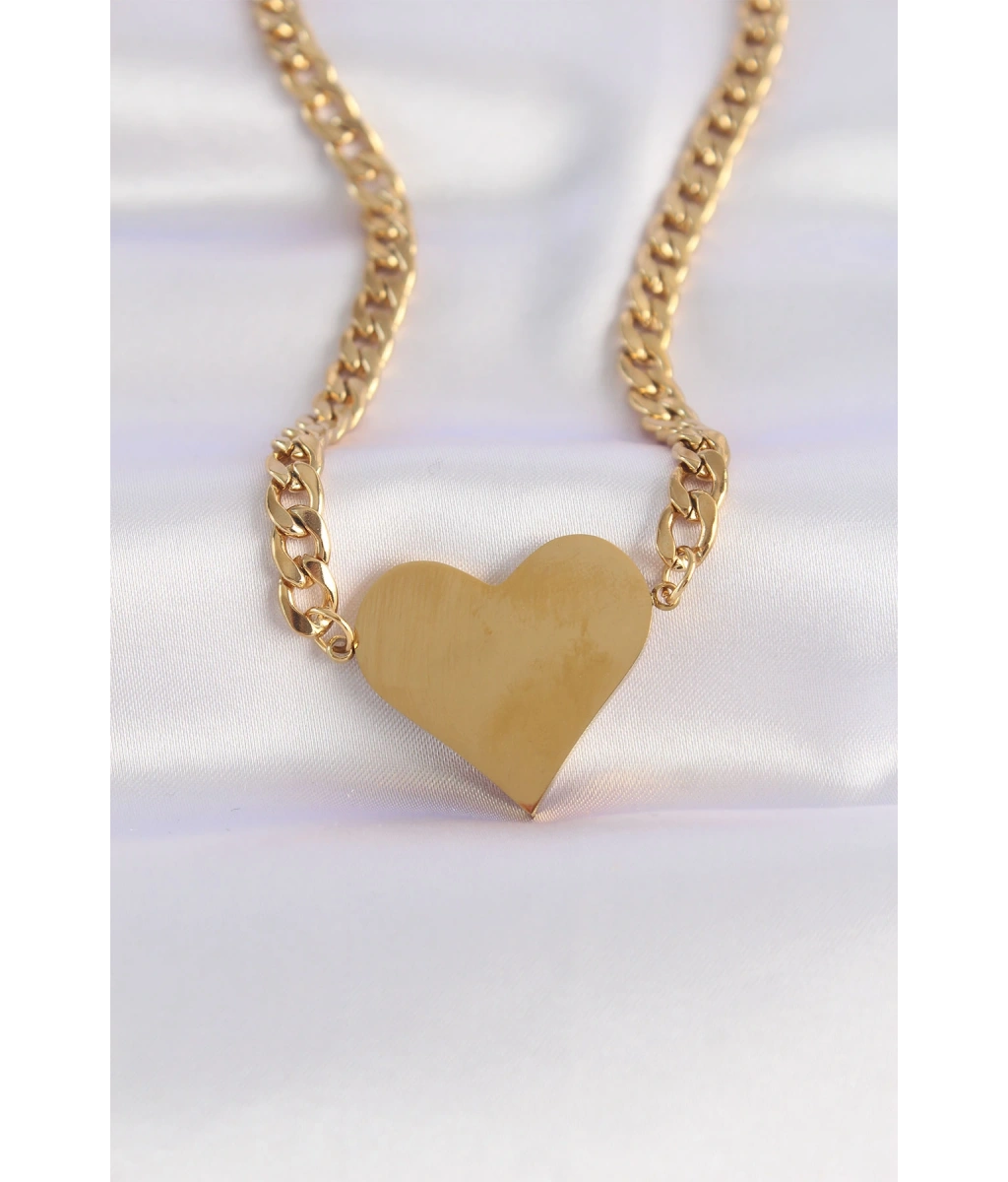 Shoecide 316l Çelik Zincir Altın Renk Düz Plaka Kalp Kolye