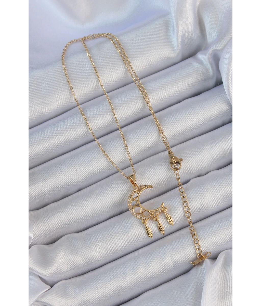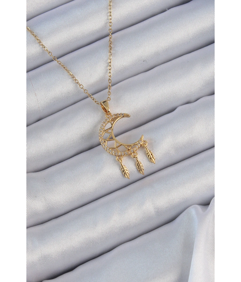 Shoecide 316l Çelik Zincir Altın Renk İşlemeli Zirkon Taşlı Ay Kolye
