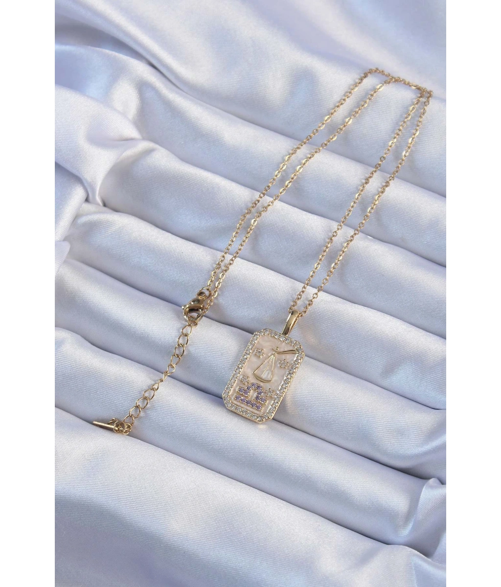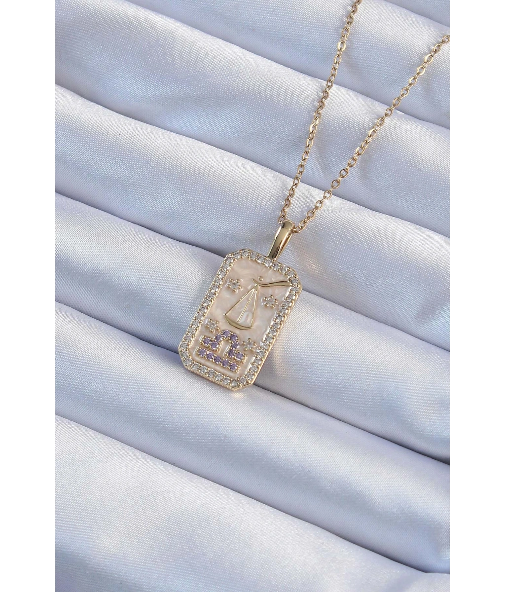 Shoecide 316l Çelik Zincir Altın Renk Lila Zirkon Taşlı Tarot Kolye