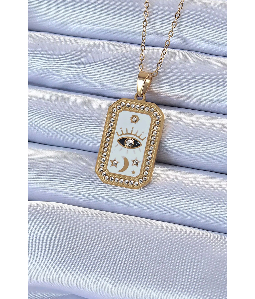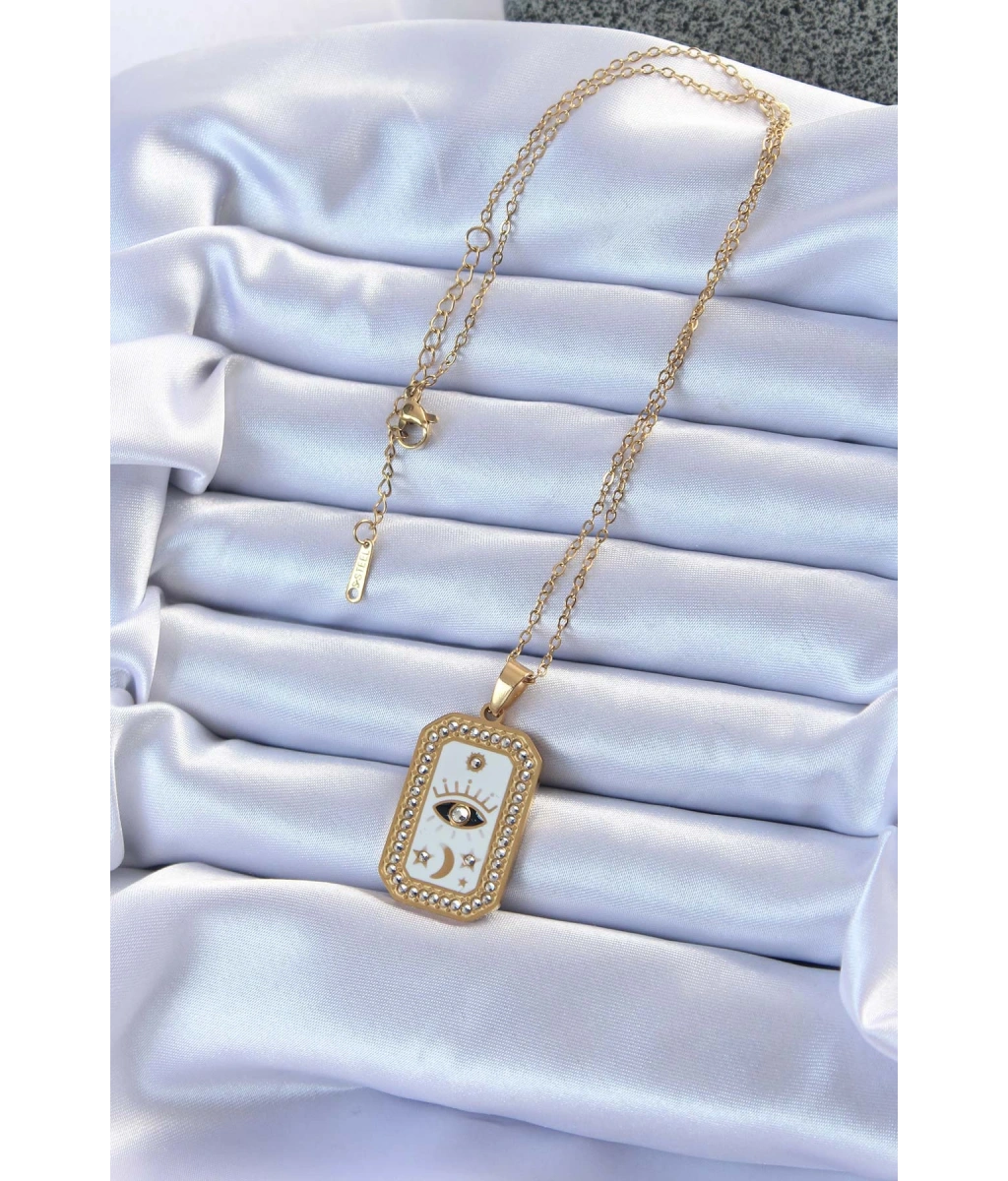 Shoecide 316l Çelik Zincir Altın Renk Mineli Zirkon Taşlı Göz Figür Tarot Kolye