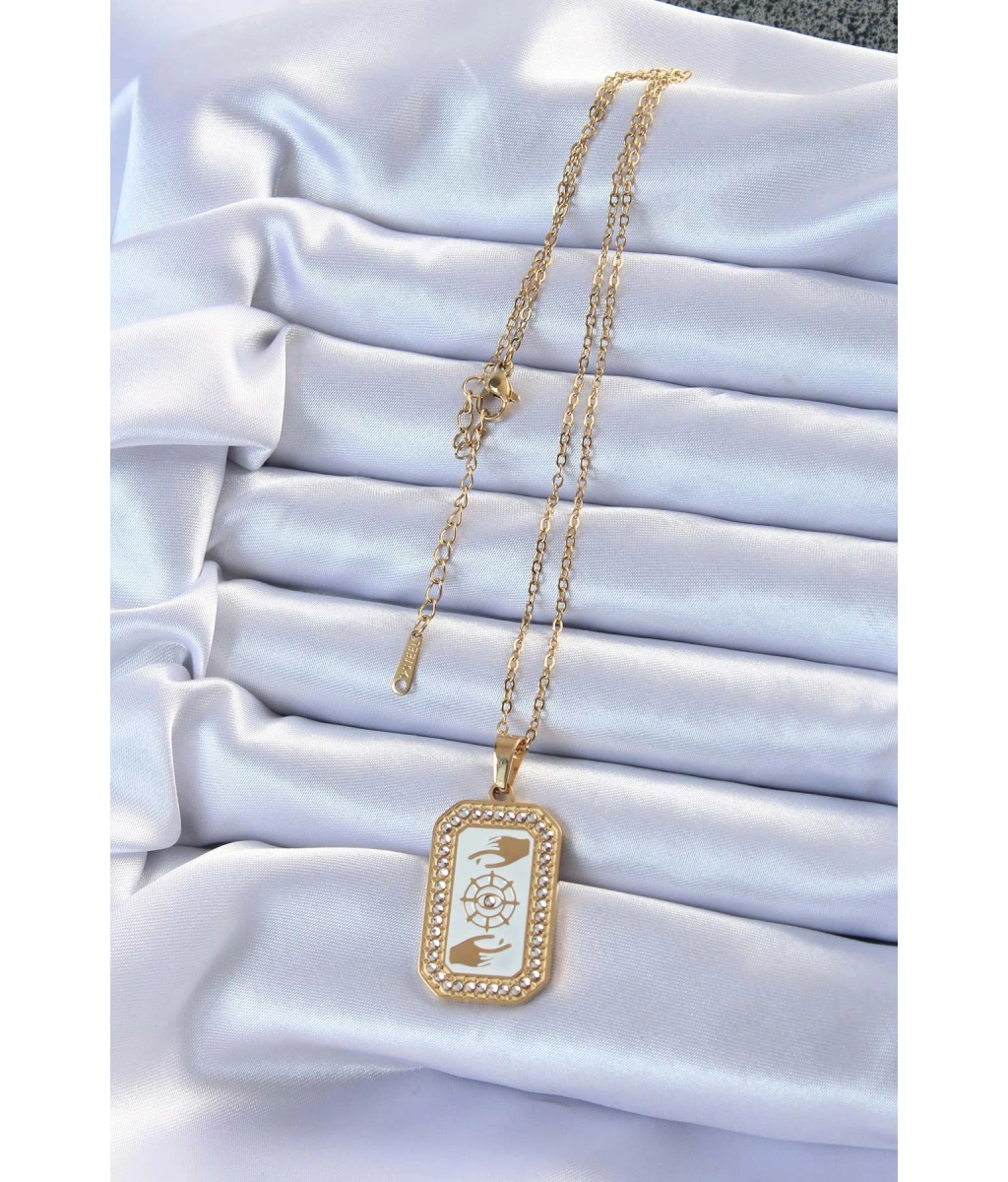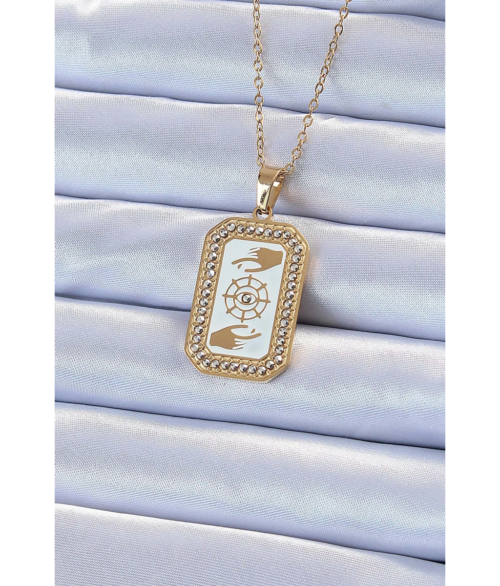 Shoecide 316l Çelik Zincir Altın Renk Mineli Zirkon Taşlı Göz Figür Tarot Kolye