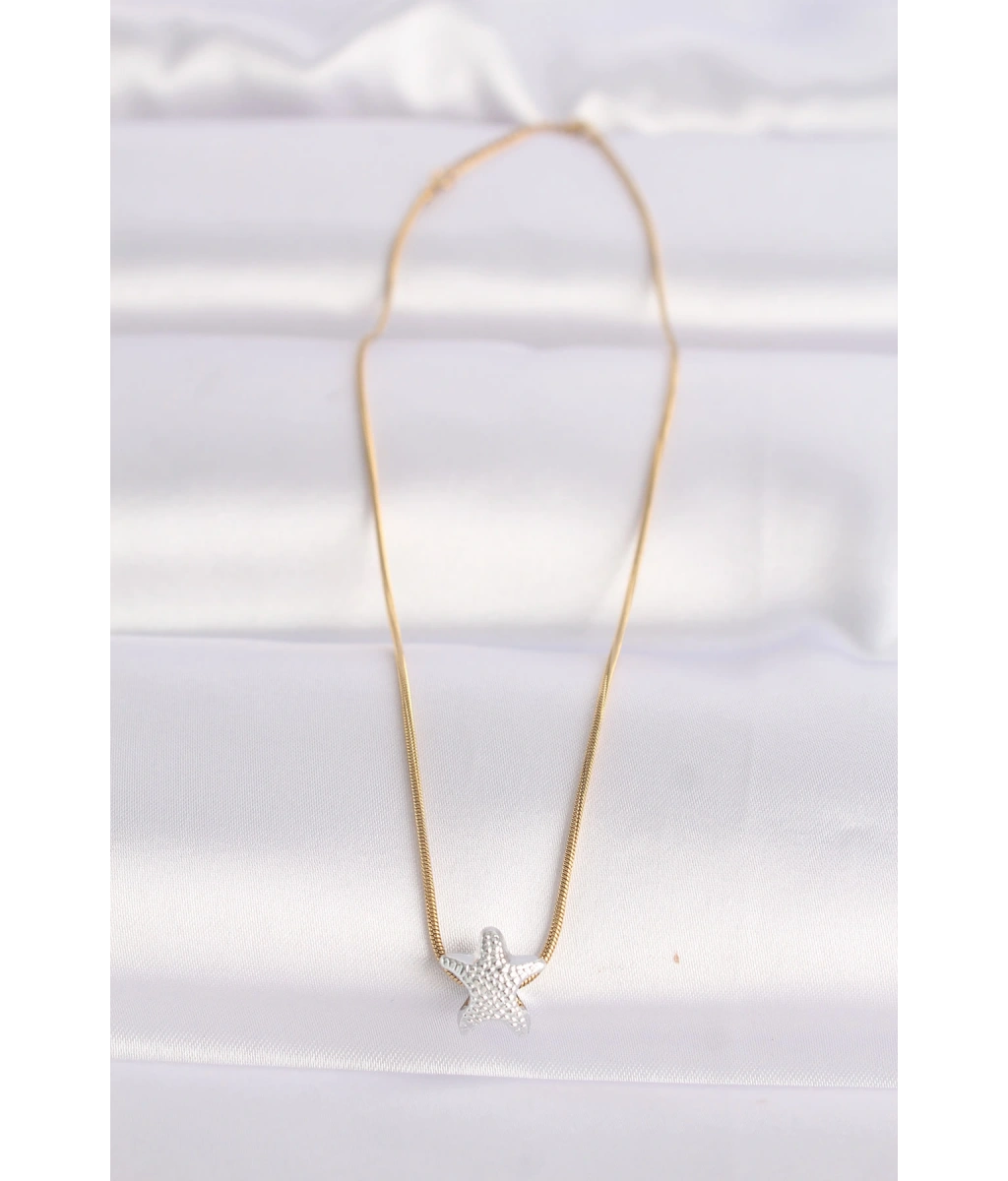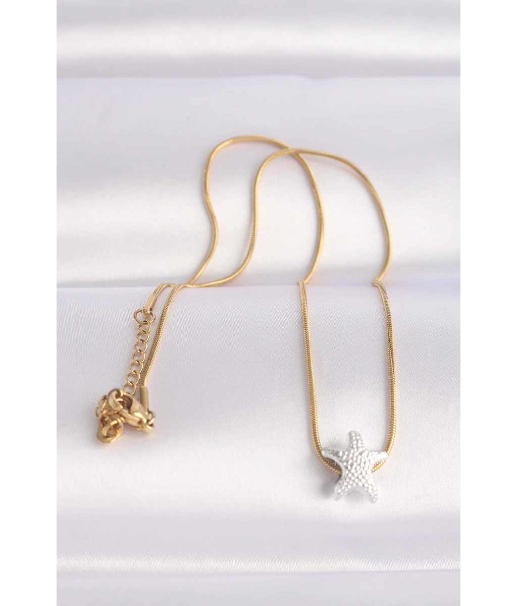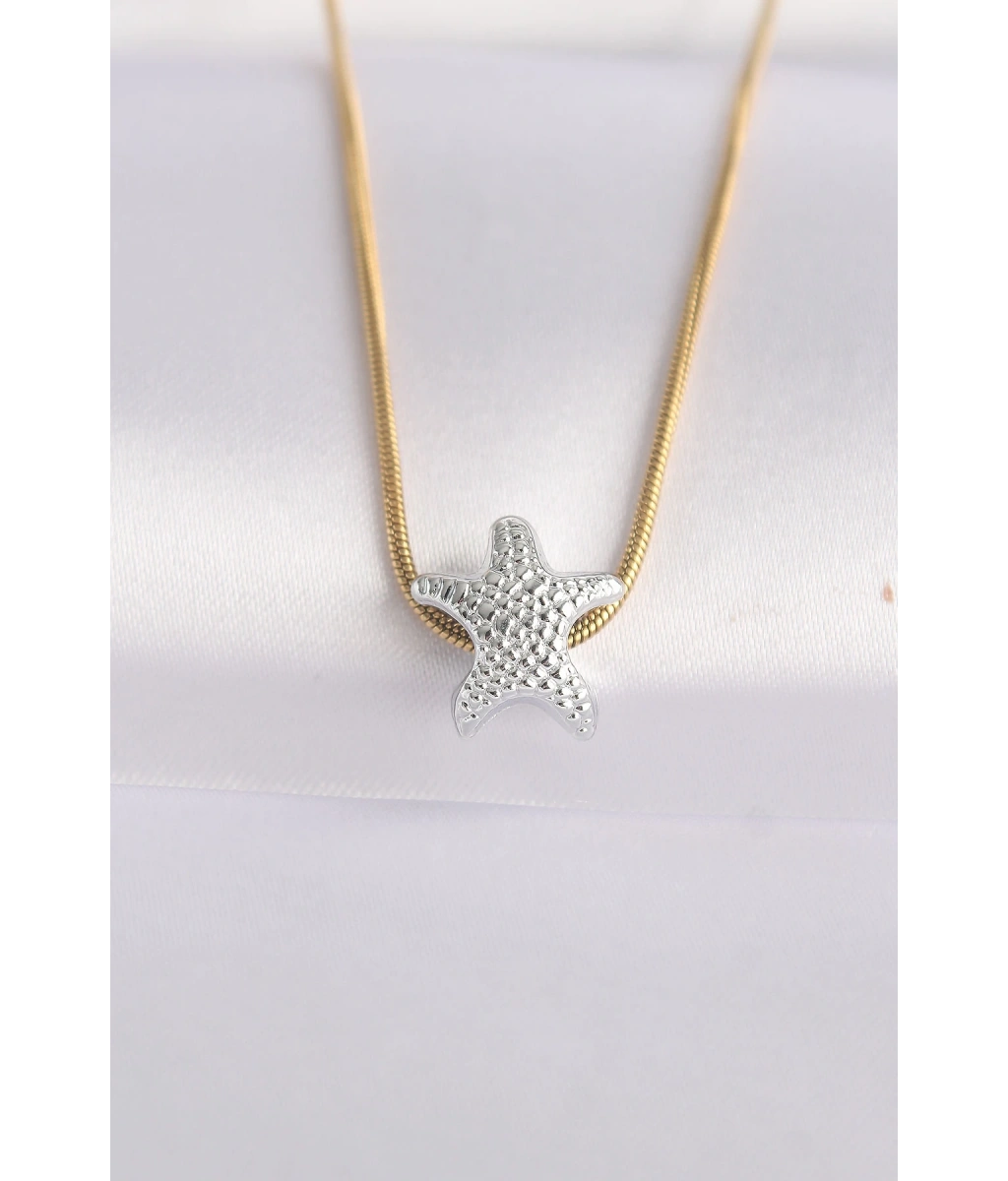 Shoecide 316l Çelik Zincir Altın Renk Zincirli Gümüş Renk Deniz Yıldızı Tasarımlı Kolye