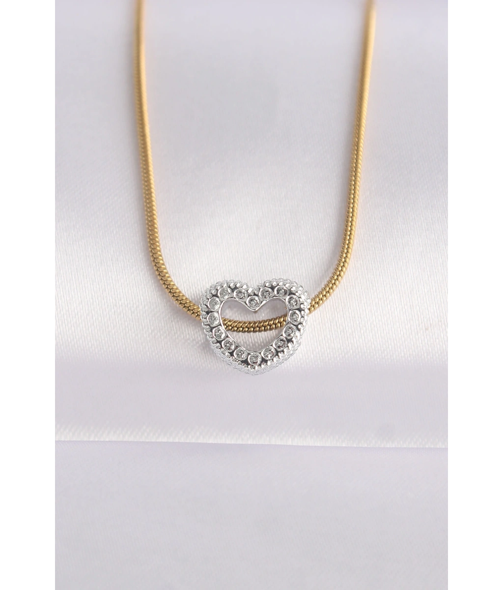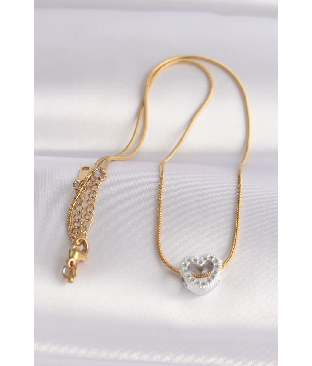 Shoecide 316l Çelik Zincir Altın Renk Zincirli Gümüş Renk Kalp Tasarımlı Kolye