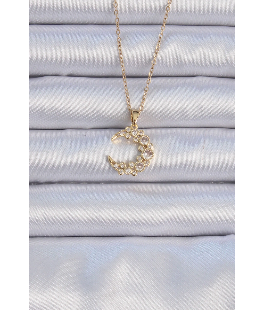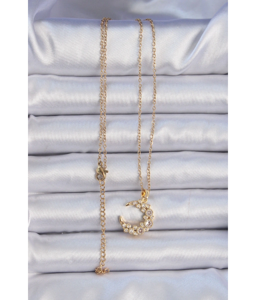 Shoecide 316l Çelik Zincir Altın Renk Zirkon Taşlı Ay Kolye