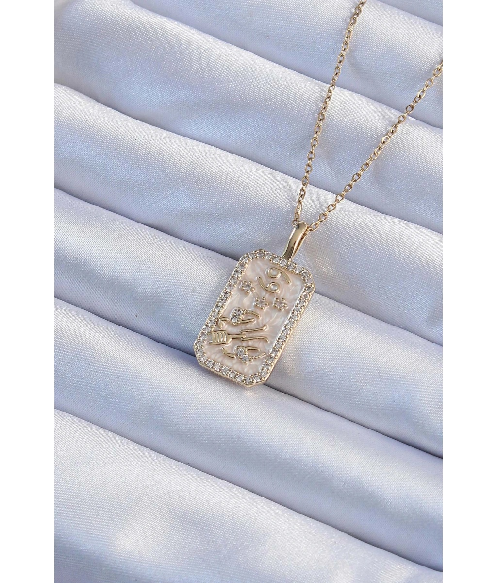 Shoecide Gümüş Renkli Zirkon Taşlı Karma Yazılı Kolye