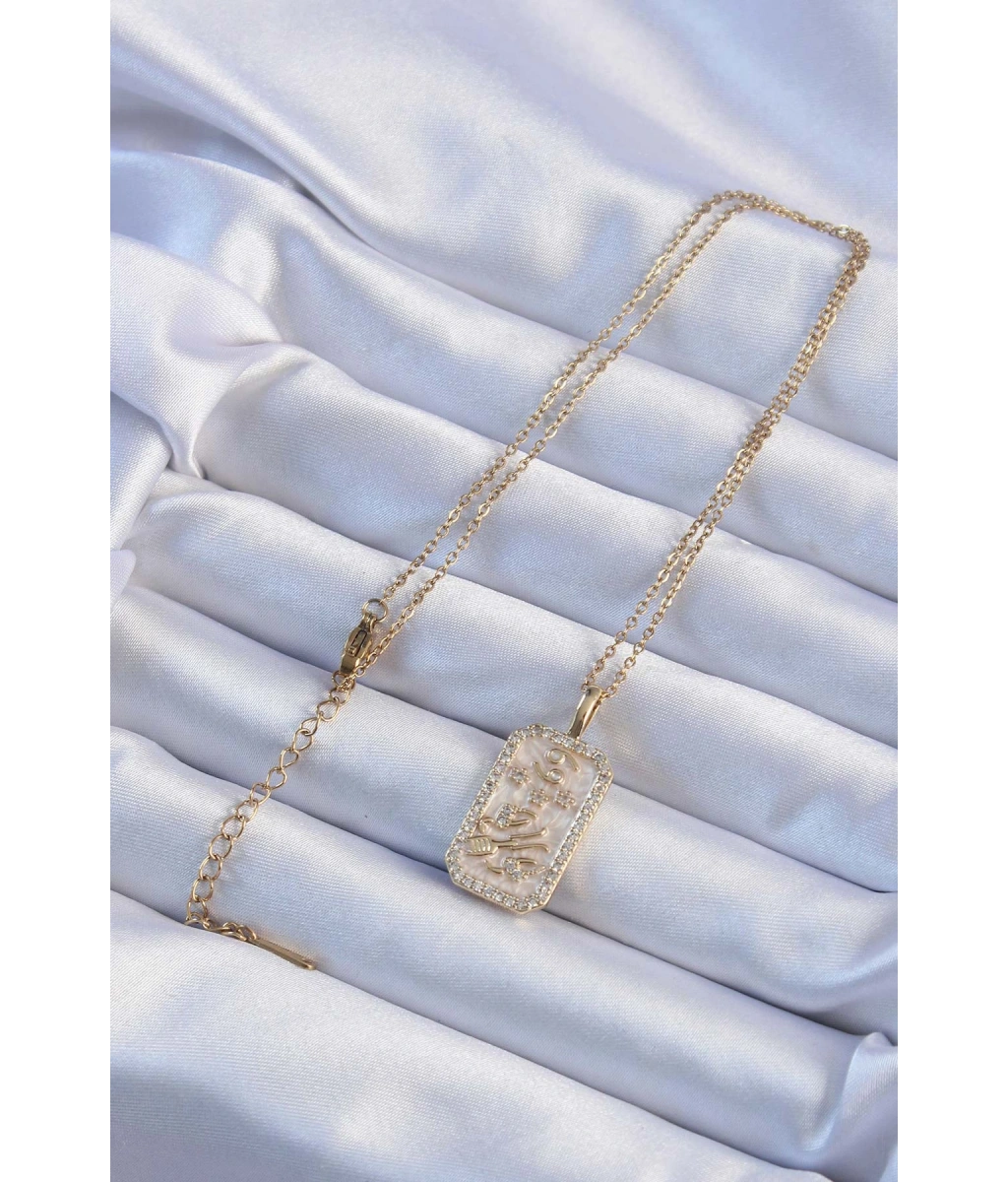 Shoecide 316l Çelik Zincir Altın Renk Zirkon Taşlı Çerçeveli Tarot Kolye