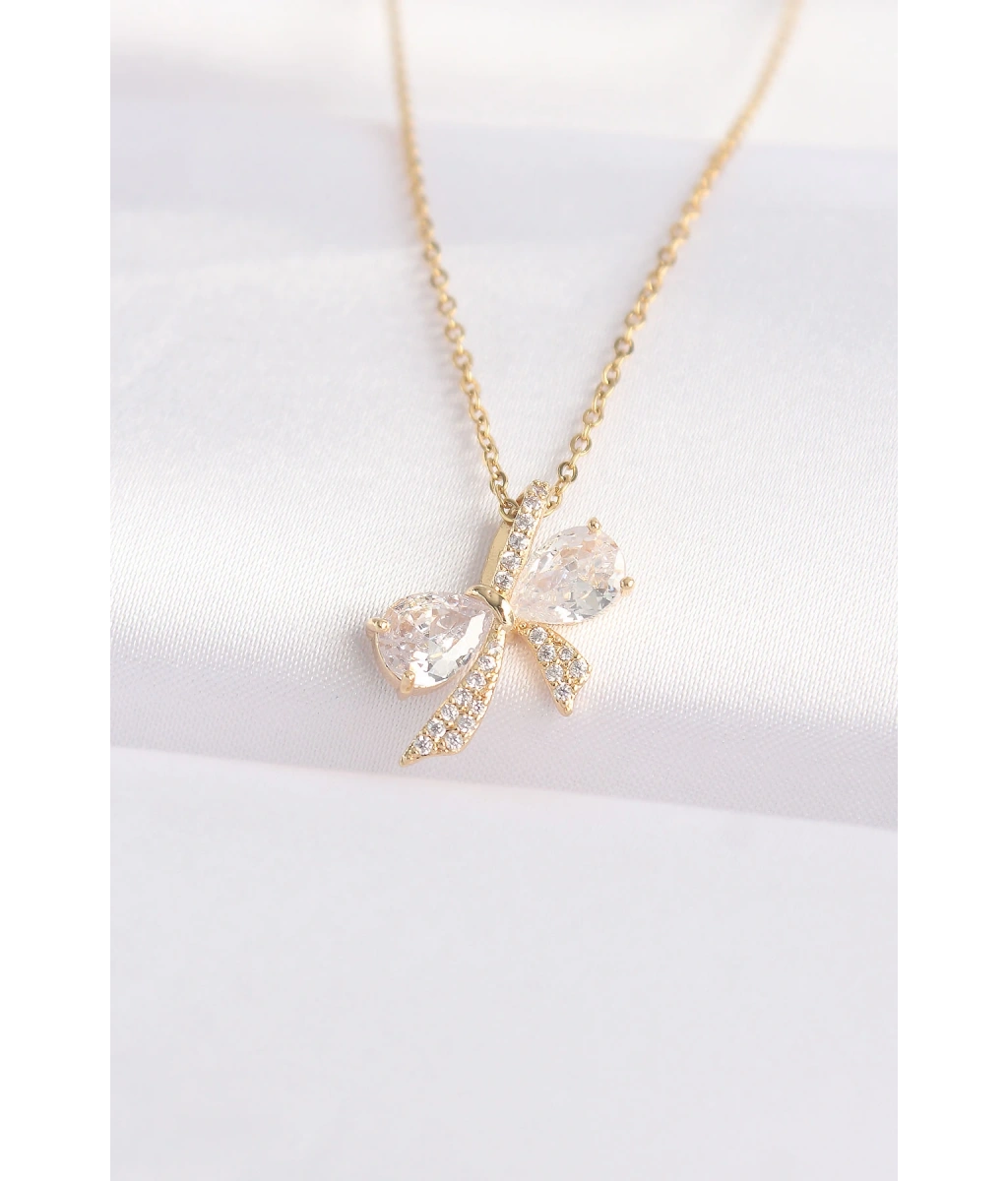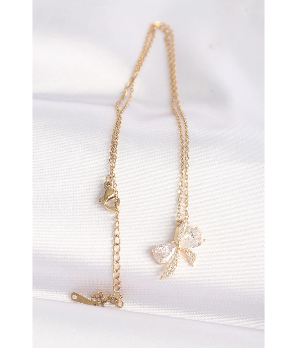 Shoecide 316l Çelik Zincir Altın Renk Zirkon Taşlı Fiyonk Kolye