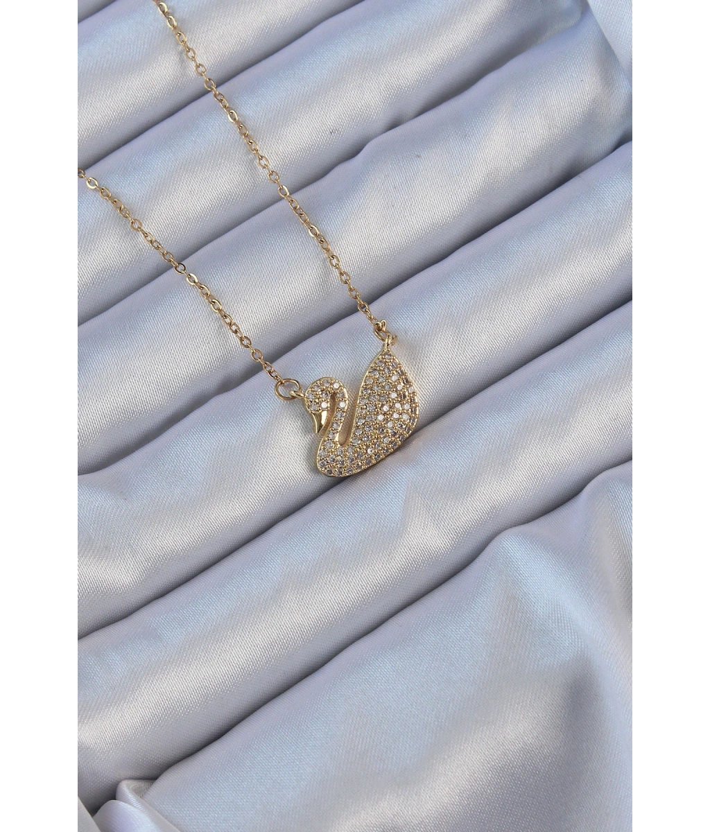 Shoecide 316l Çelik Zincir Altın Renk Zirkon Taşlı Kuğu Kolye