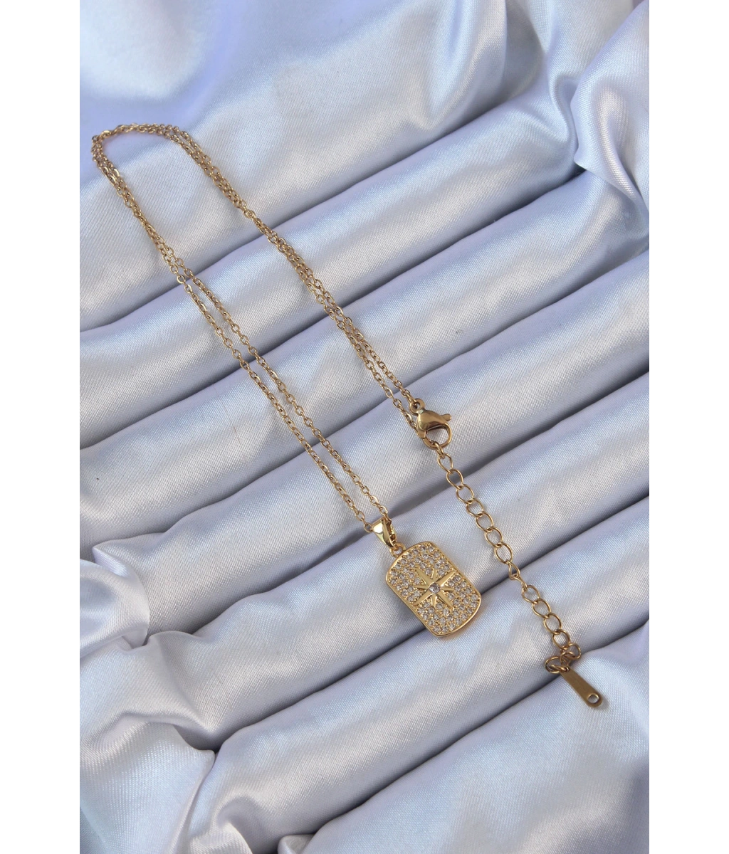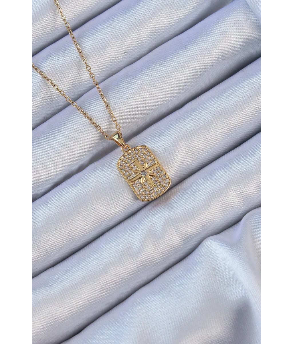 Shoecide 316l Çelik Zincir Altın Renk Zirkon Taşlı Kutup Yıldızlı Vintage Kolye