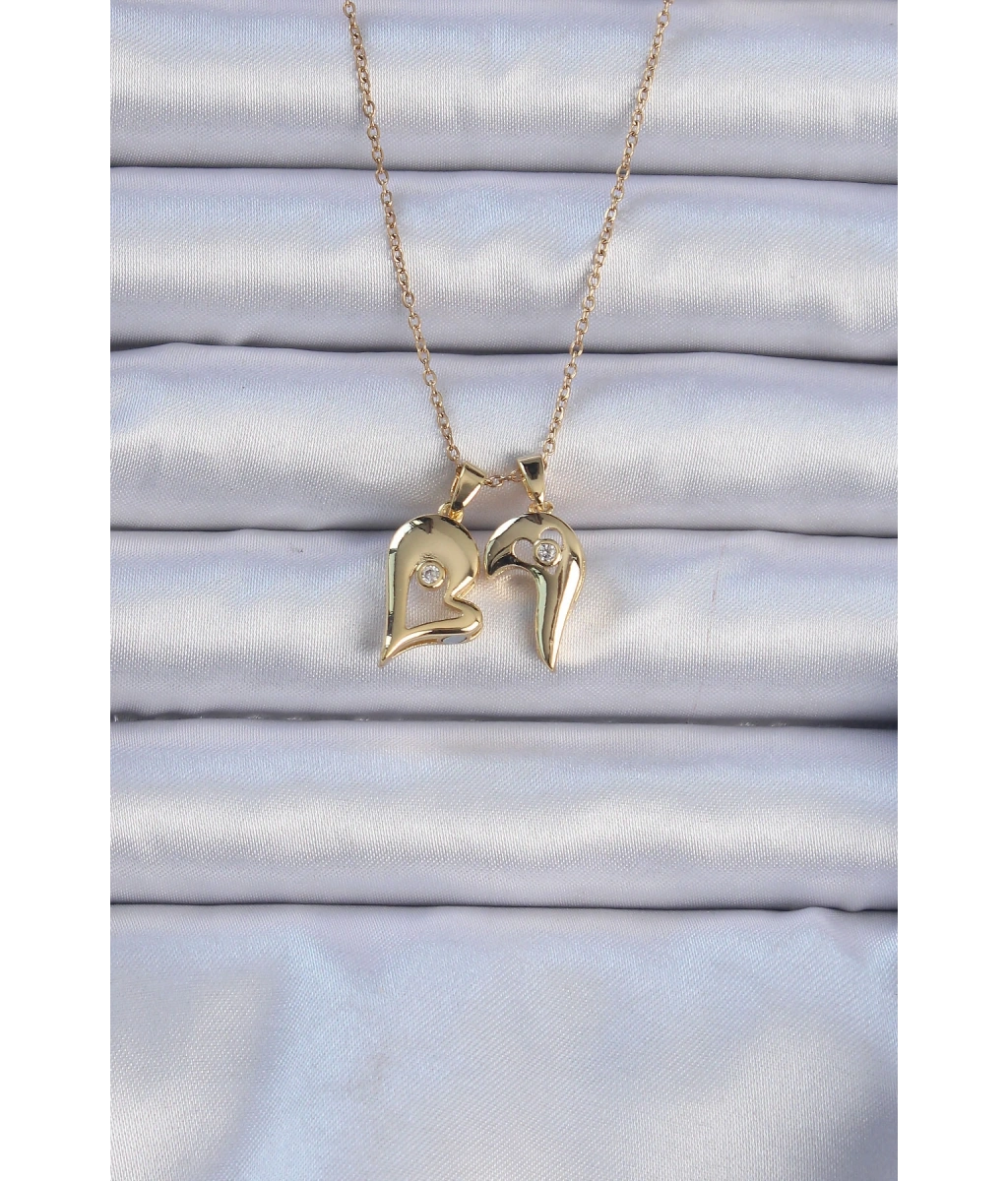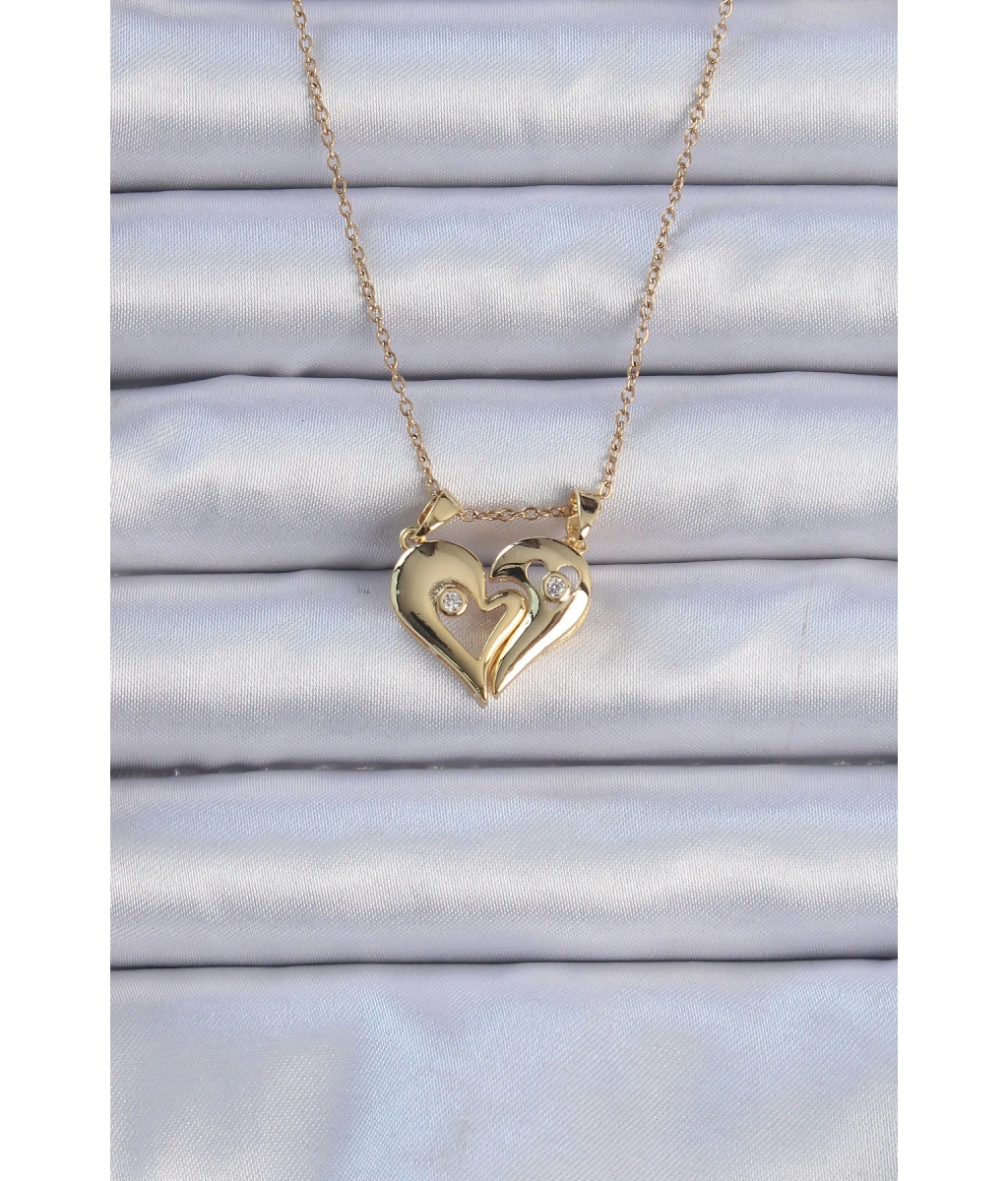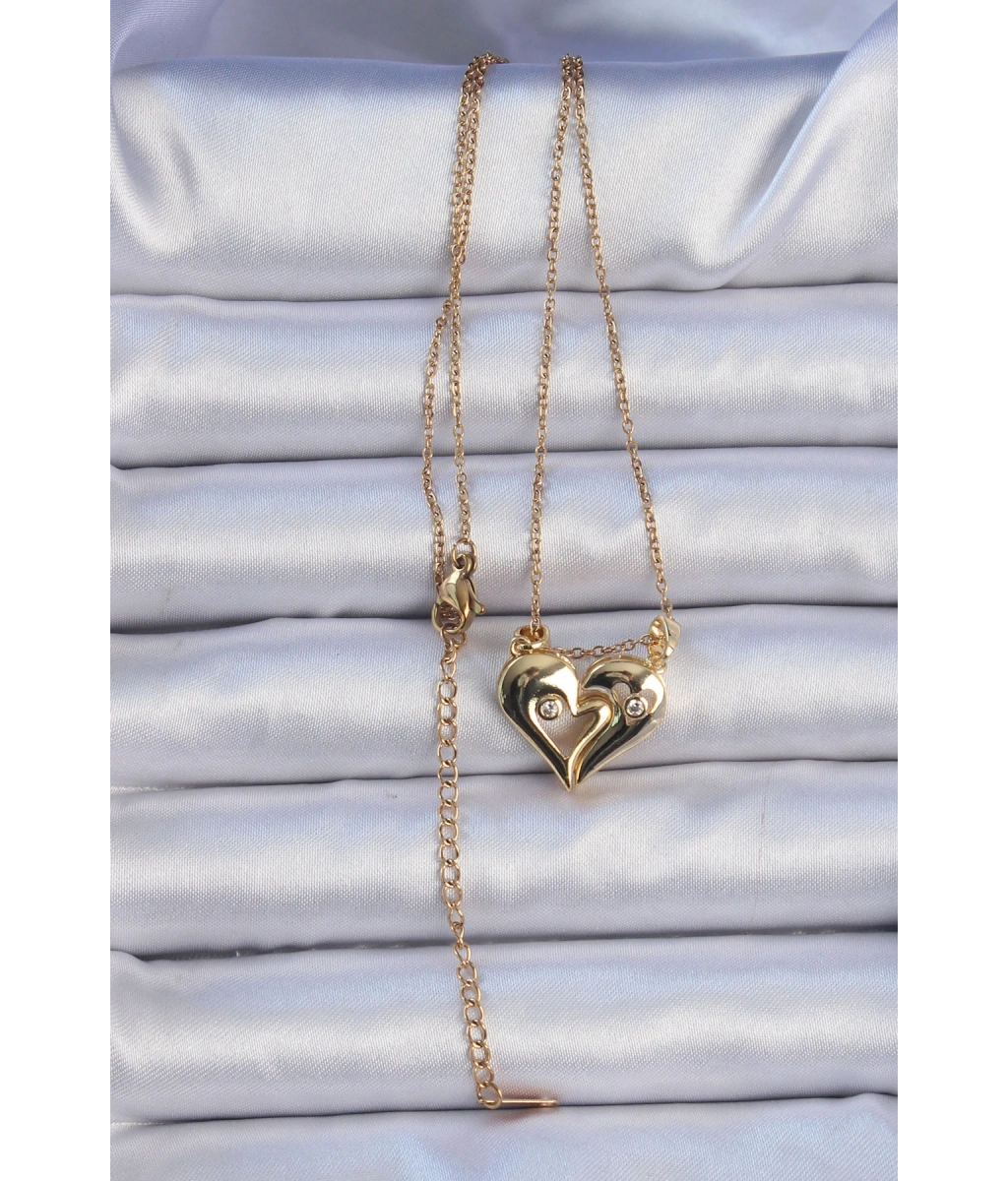Shoecide 316l Çelik Zincir Altın Renk Zirkon Taşlı Mıknatıslı Kalp Kolye