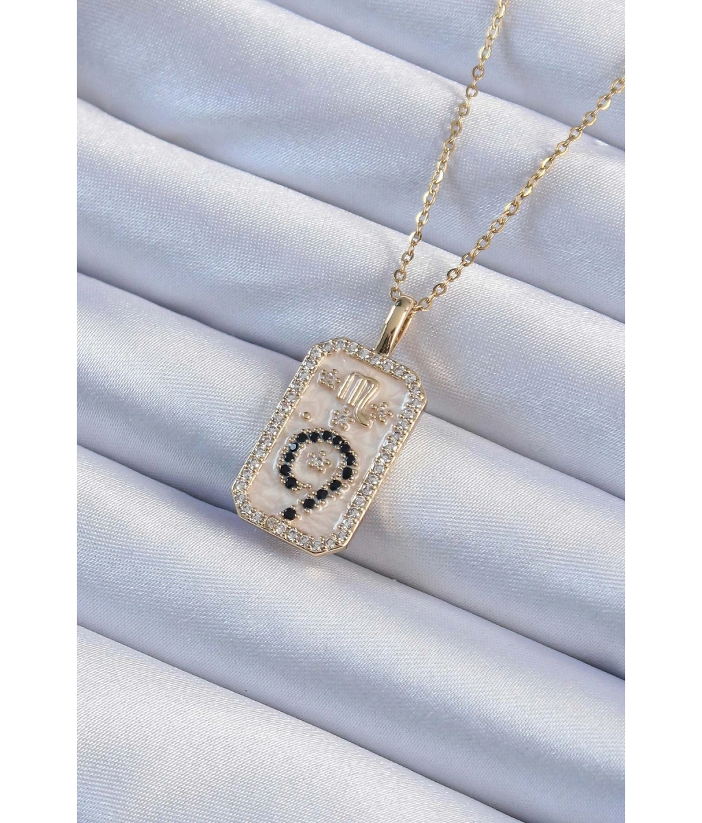 Shoecide 316l Çelik Zincir Altın Renk Zirkon Taşlı Minimal Papatya Figürlü Tarot Kolye
