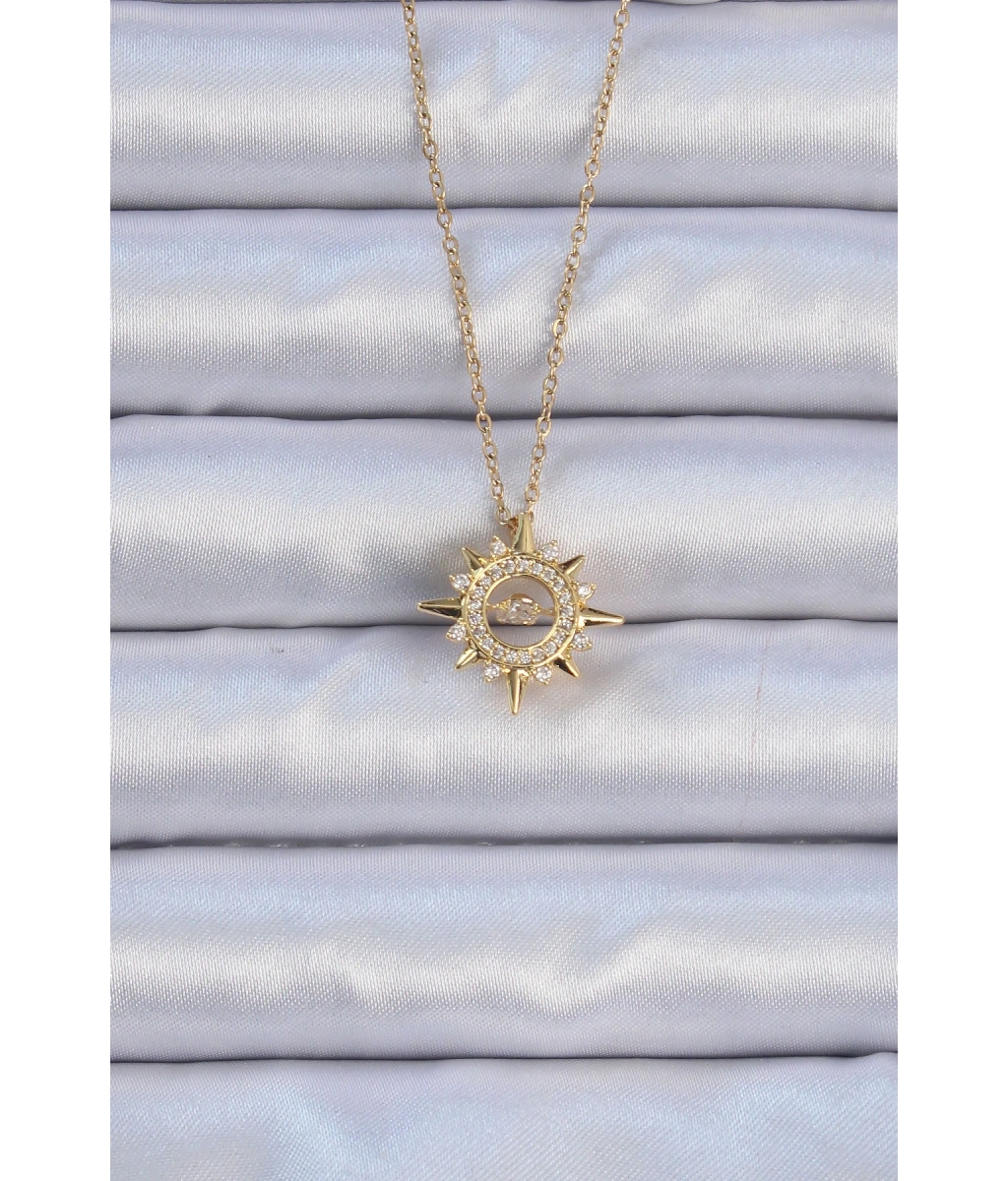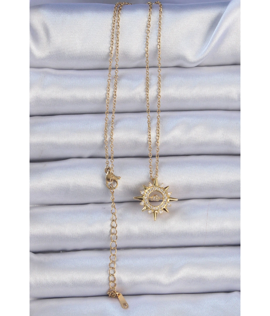 Shoecide 316l Çelik Zincir Altın Renk Zirkon Taşlı Parlayan Yıldız Kolye