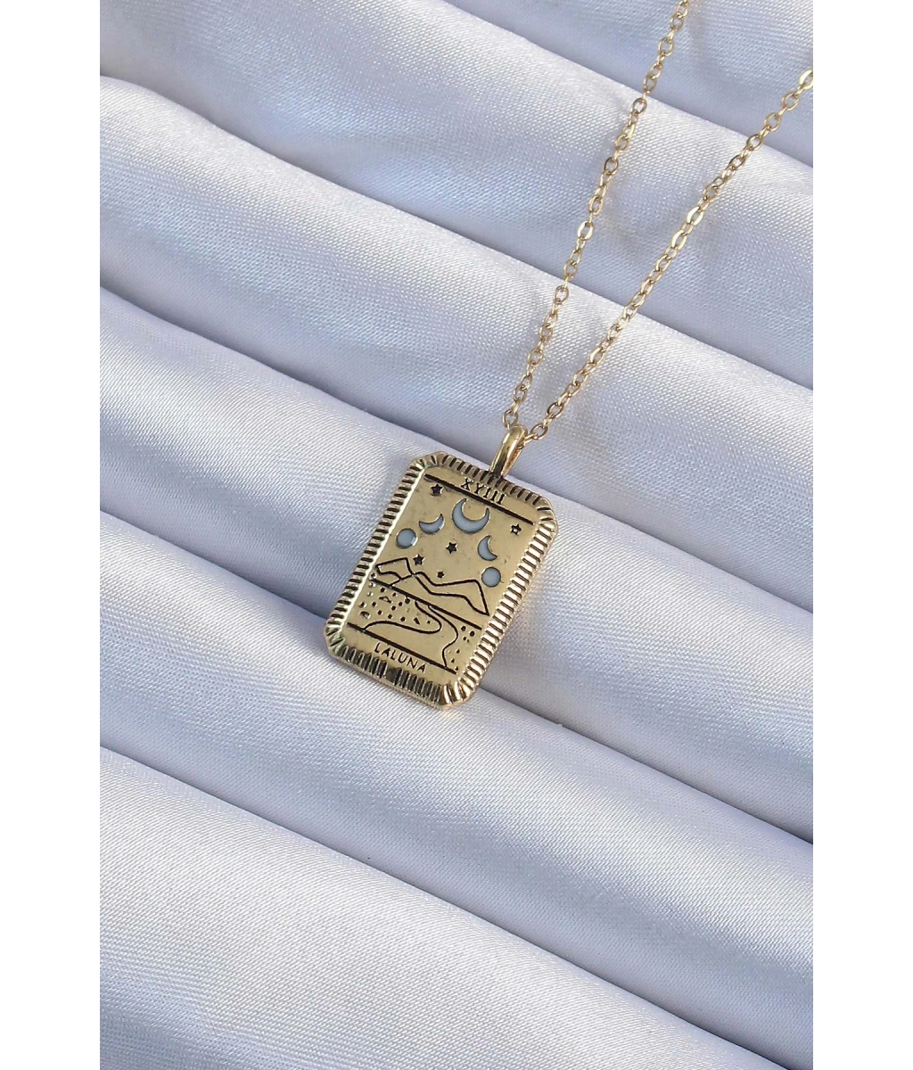 Shoecide 316l Çelik Zincir Eskitme Altın Renk Ay Figürlü Tarot Kolye