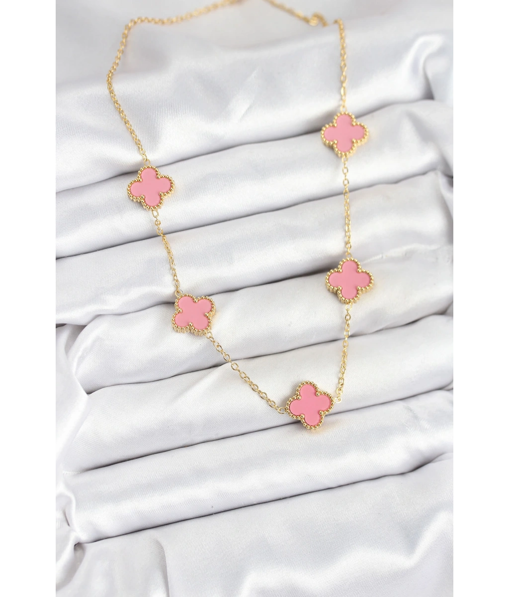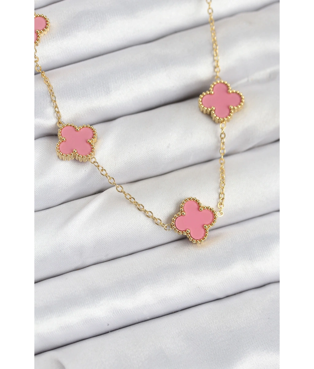 Shoecide 316l Çelik Zincir Gold Pembe Renk Yonca Kadın Kolye