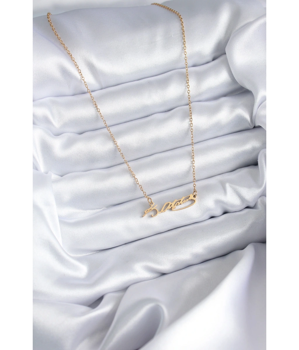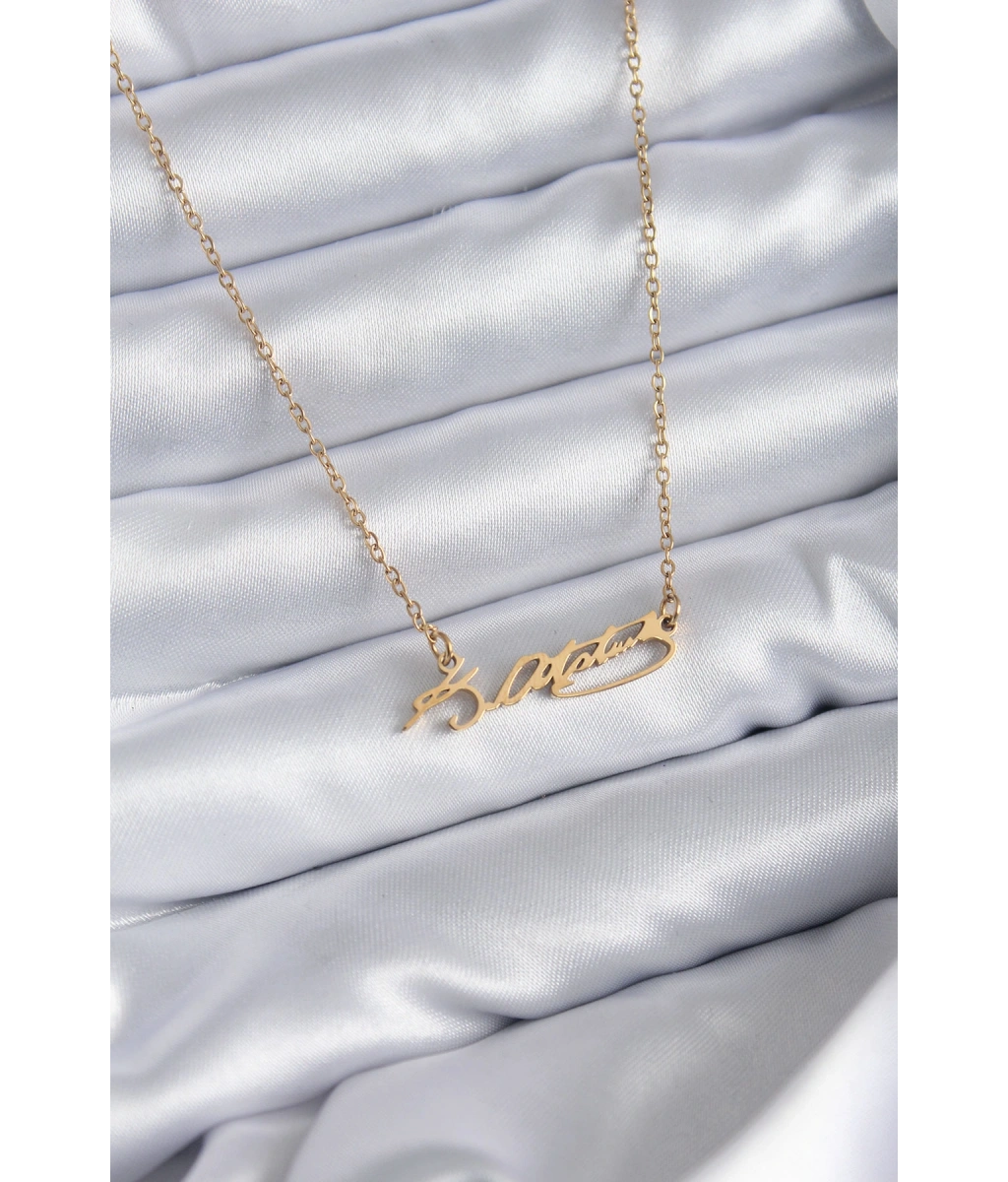 Shoecide 316l Çelik Zincir Gold Renk Atatürk İmzası Model Kadın Kolye