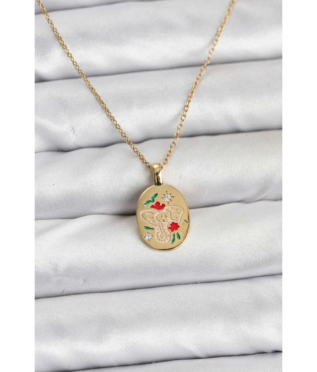 Shoecide 316l Çelik Zincir Gold Renk Fil Figürlü Kadın Kolye