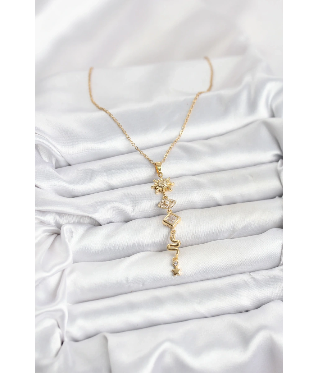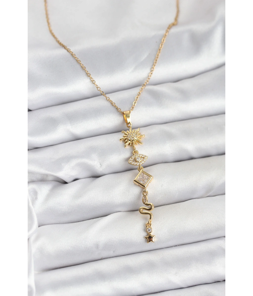 Shoecide 316l Çelik Zincir Gold Renk Güneş Ve Enerji Model Kadın Y Kolye