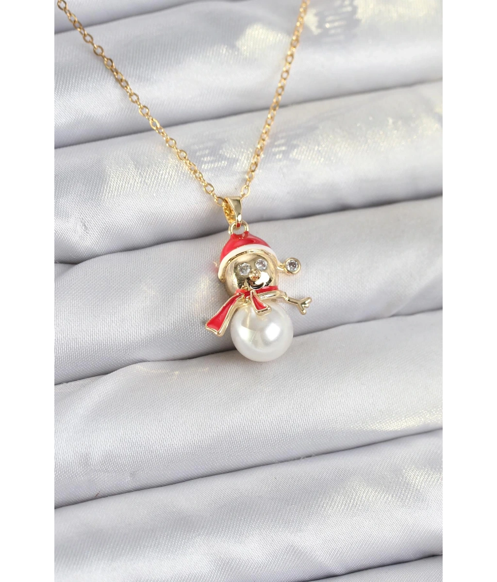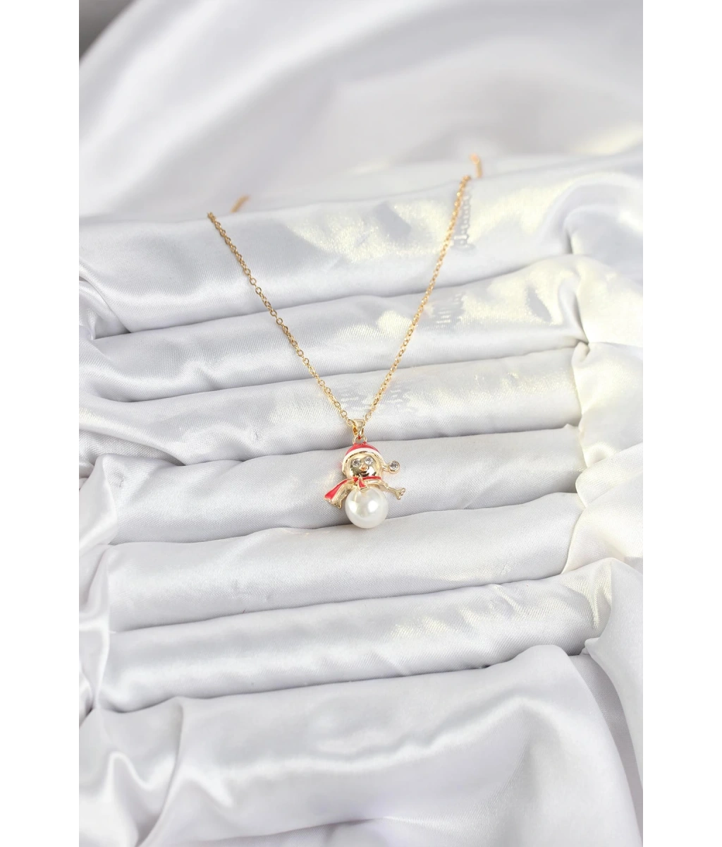 Shoecide 316l Çelik Zincir Gold Renk Kardan Adam Figürlü Yılbaşı Temalı Kadın Kolye
