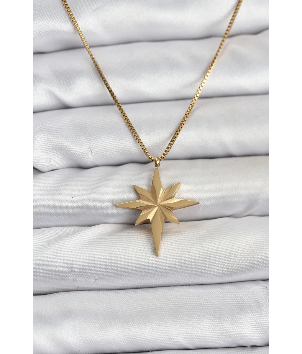 Shoecide 316l Çelik Zincir Gold Renk Kutup Yıldızı Model 60 Cm Zincir Kadın Kolye